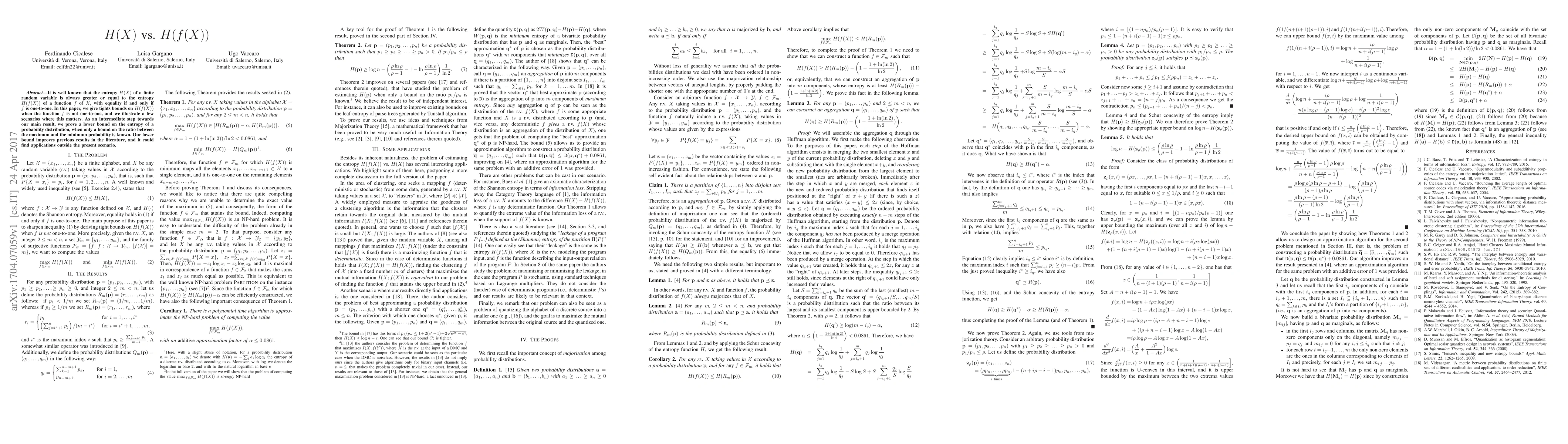 The paper explores bounds on the entropy of a function f(X) when f is not one-to-one, improving previous results and illustrating scenarios where this matters.