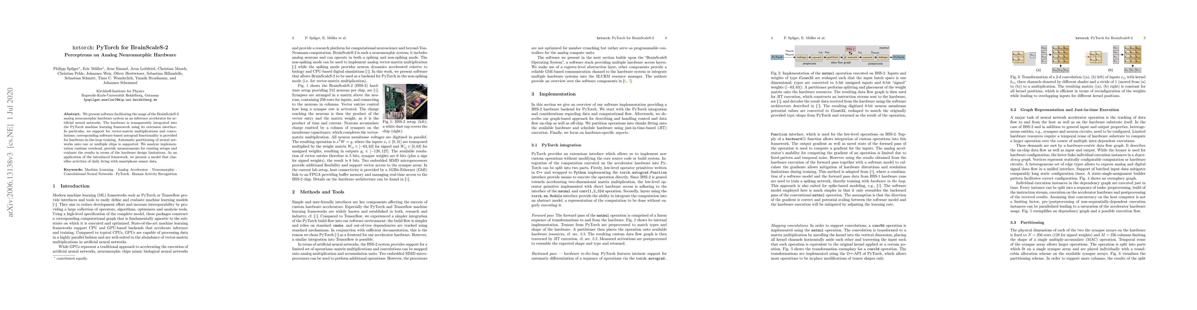 This paper introduces hxtorch, a software extension for PyTorch that enables the BrainScaleS-2 analog neuromorphic hardware to accelerate neural network inference. The framework supports vector-matrix multiplications and convolutions, with automatic partitioning and autograd for hardware-in-the-loop training, and demonstrates its application in classifying daily activities using smartphone sensor data.