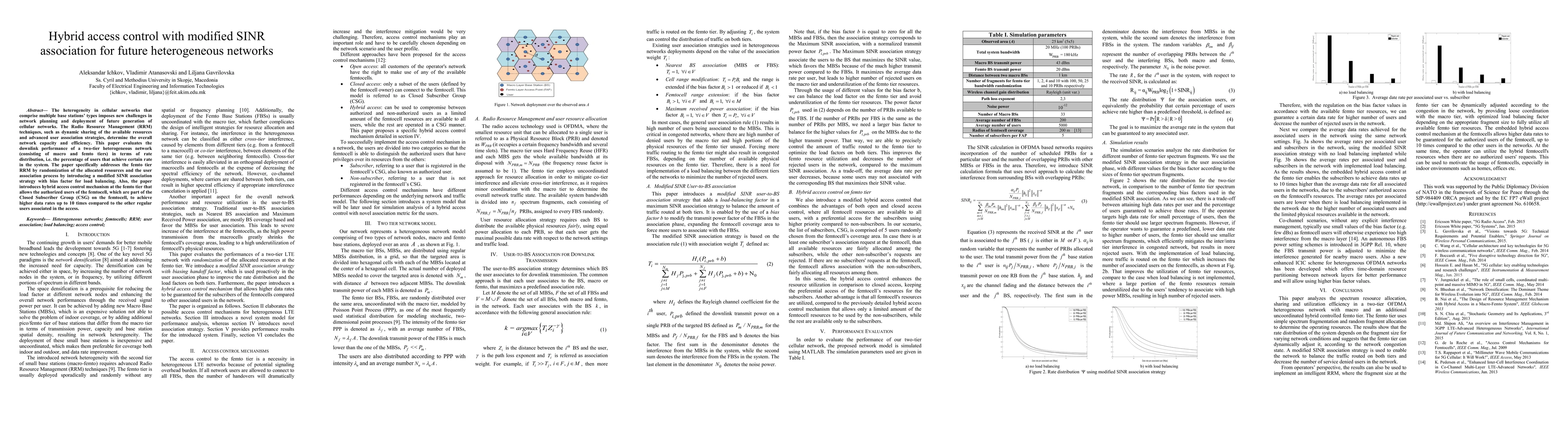 This paper proposes a hybrid access control and modified SINR association strategy for managing resources in a two-tier heterogeneous network, aiming to improve user rate distribution and efficiency. The femto tier employs randomized resource allocation and a bias factor for load balancing, while the hybrid access control enhances data rates for authorized users by up to 10 times compared to regular users.