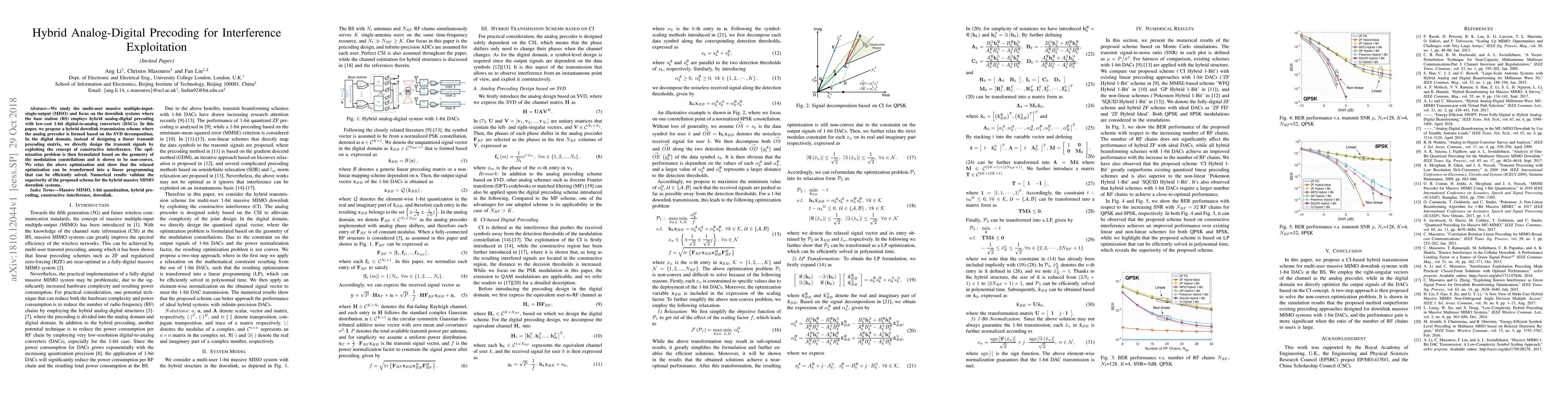 This paper proposes a hybrid analog-digital precoding scheme for multi-user massive MIMO downlink systems using low-cost 1-bit DACs. The scheme leverages constructive interference in the digital domain and employs SVD for the analog precoder, transforming a non-convex optimization problem into a solvable linear programming. Numerical results demonstrate its effectiveness.