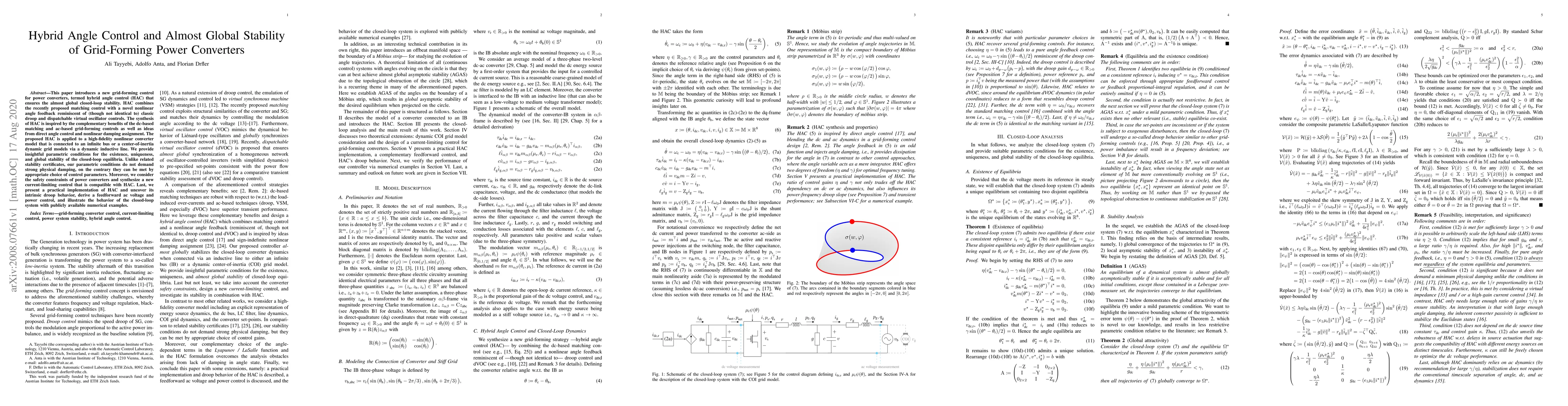 This paper introduces a new grid-forming control for power converters, termed hybrid angle control (HAC) that ensures the almost global closed-loop stability. HAC combines the recently proposed matching control with a novel nonlinear angle feedback reminiscent of (though not identical to) classic droop and dispatchable virtual oscillator controls. The synthesis of HAC is inspired by the complementary benefits of the dc-based matching and ac-based grid-forming controls as well as ideas from direct angle control and nonlinear damping assignment. The proposed HAC is applied to a high-fidelity nonlinear converter model that is connected to an infinite bus or a center-of-inertia dynamic grid models via a dynamic inductive line. We provide insightful parametric conditions for the existence, uniqueness, and global stability of the closed-loop equilibria. Unlike related stability certificates, our parametric conditions do not demand strong physical damping, on the contrary they can be met by appropriate choice of control parameters. Moreover, we consider the safety constraints of power converters and synthesize a new current-limiting control that is compatible with HAC. Last, we present a practical implementation of HAC and uncover its intrinsic droop behavior, derive a feedforward ac voltage and power control, and illustrate the behavior of the closed-loop system with publicly available numerical examples.