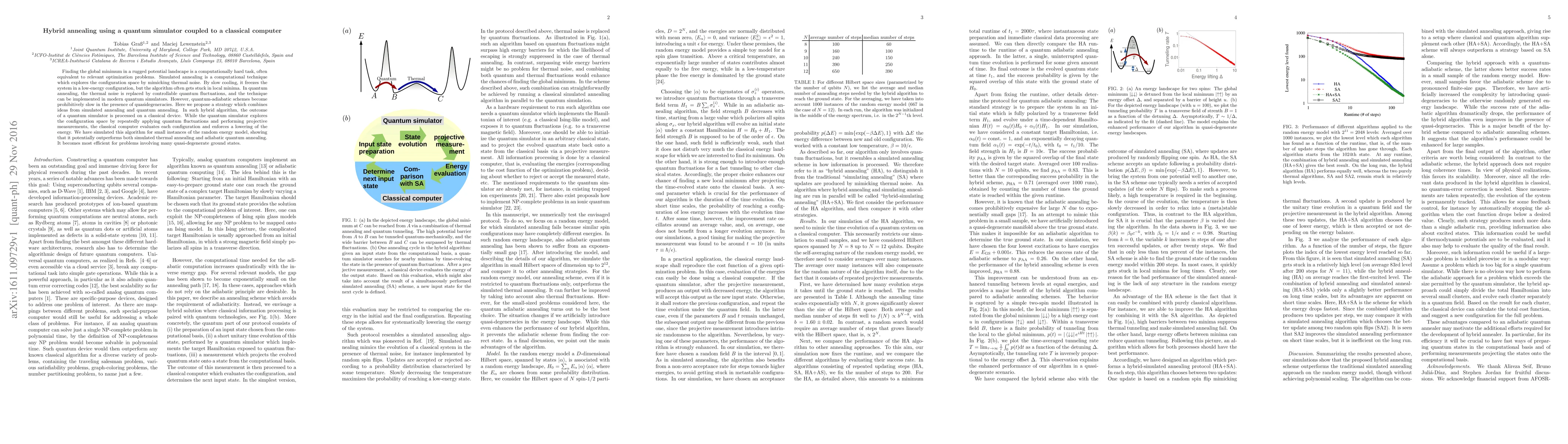 This paper proposes a hybrid annealing algorithm that combines simulated and quantum annealing techniques. The quantum simulator explores configuration space using quantum fluctuations, while a classical computer evaluates configurations and lowers energy, potentially outperforming both standalone methods, especially for problems with many quasi-degenerate ground states.