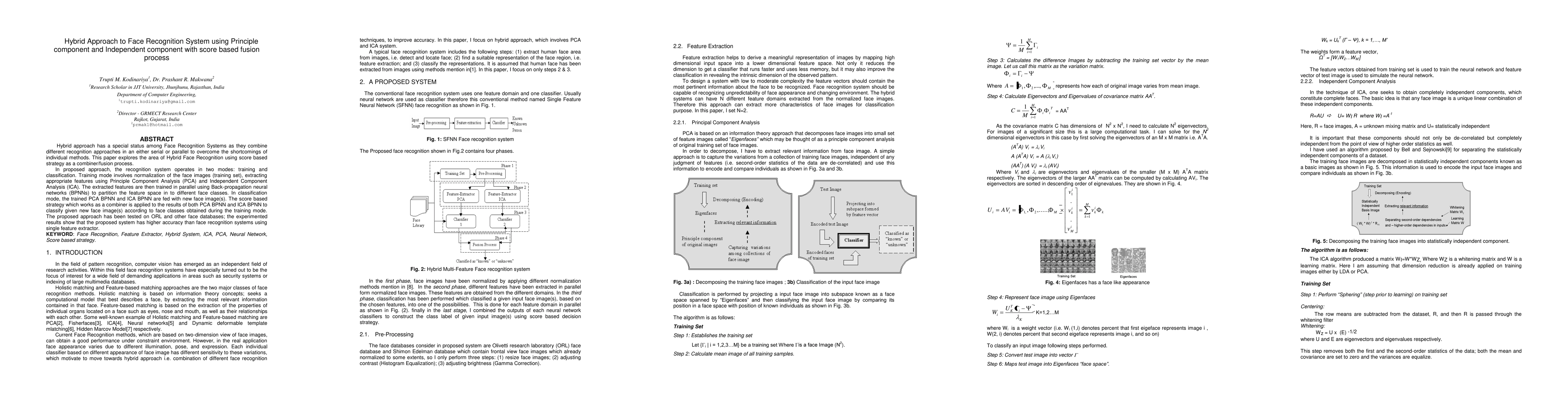 Hybrid approach has a special status among Face Recognition Systems as they combine different recognition approaches in an either serial or parallel to overcome the shortcomings of individual methods. This paper explores the area of Hybrid Face Recognition using score based strategy as a combiner/fusion process. In proposed approach, the recognition system operates in two modes: training and classification. Training mode involves normalization of the face images (training set), extracting appropriate features using Principle Component Analysis (PCA) and Independent Component Analysis (ICA). The extracted features are then trained in parallel using Back-propagation neural networks (BPNNs) to partition the feature space in to different face classes. In classification mode, the trained PCA BPNN and ICA BPNN are fed with new face image(s). The score based strategy which works as a combiner is applied to the results of both PCA BPNN and ICA BPNN to classify given new face image(s) according to face classes obtained during the training mode. The proposed approach has been tested on ORL and other face databases; the experimented results show that the proposed system has higher accuracy than face recognition systems using single feature extractor.
