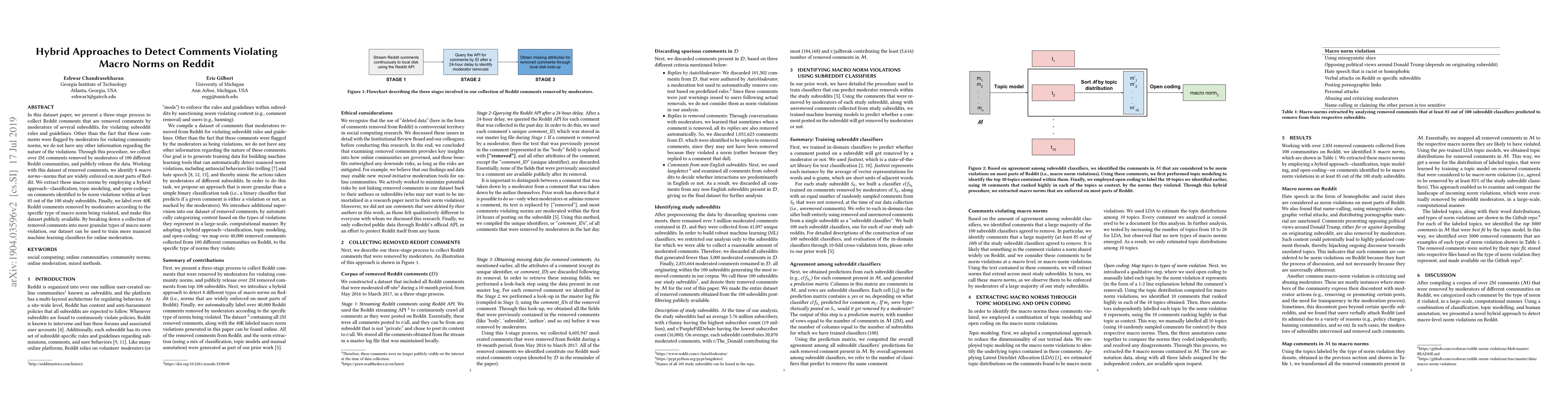 In this dataset paper, we present a three-stage process to collect Reddit comments that are removed comments by moderators of several subreddits, for violating subreddit rules and guidelines. Other than the fact that these comments were flagged by moderators for violating community norms, we do not have any other information regarding the nature of the violations. Through this procedure, we collect over 2M comments removed by moderators of 100 different Reddit communities, and publicly release the data. Working with this dataset of removed comments, we identify 8 macro norms---norms that are widely enforced on most parts of Reddit. We extract these macro norms by employing a hybrid approach---classification, topic modeling, and open-coding---on comments identified to be norm violations within at least 85 out of the 100 study subreddits. Finally, we label over 40K Reddit comments removed by moderators according to the specific type of macro norm being violated, and make this dataset publicly available. By breaking down a collection of removed comments into more granular types of macro norm violation, our dataset can be used to train more nuanced machine learning classifiers for online moderation.