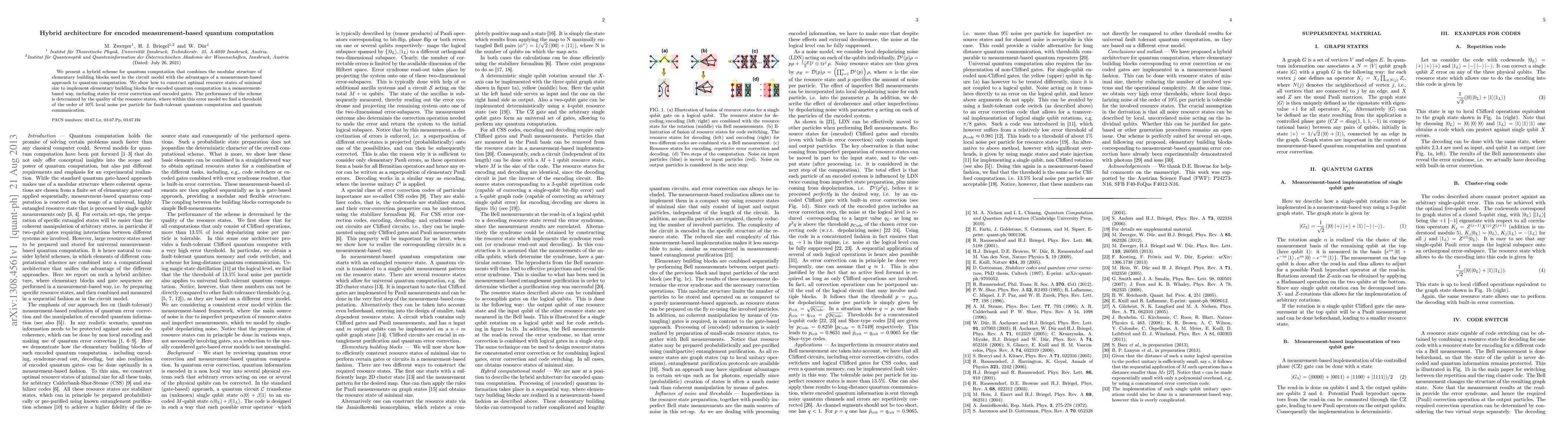 This paper proposes a hybrid quantum computation framework that merges circuit model modularity with measurement-based techniques, optimizing resource states for encoded quantum computation, including error correction. The scheme achieves a fault-tolerant threshold of around 10% local noise per particle.