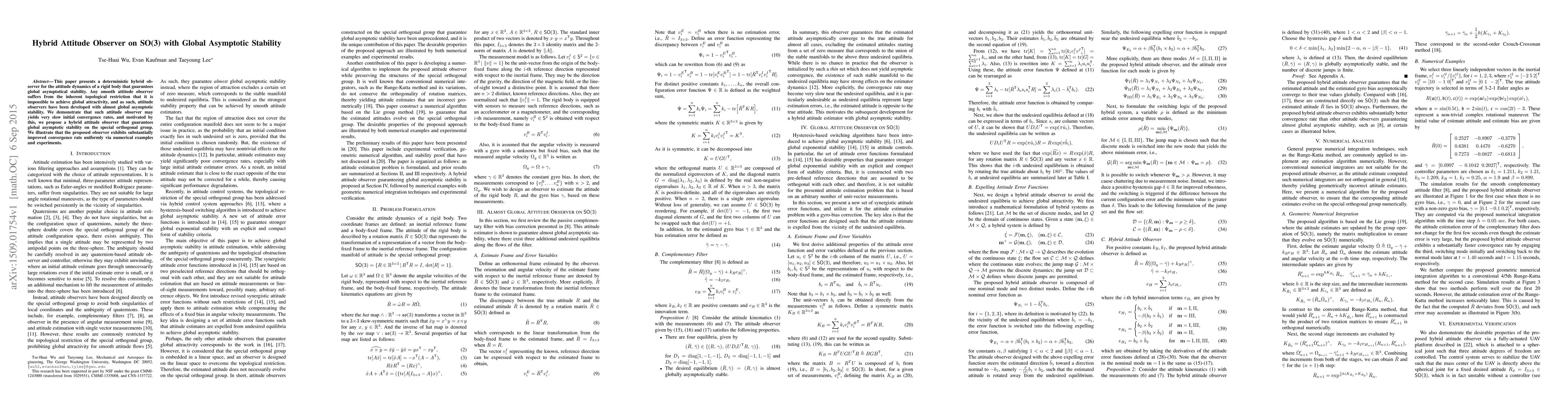 This paper proposes a hybrid attitude observer ensuring global asymptotic stability on SO(3) for rigid body dynamics, overcoming the slow convergence of traditional smooth observers and demonstrating improved convergence rates through numerical examples and experiments.