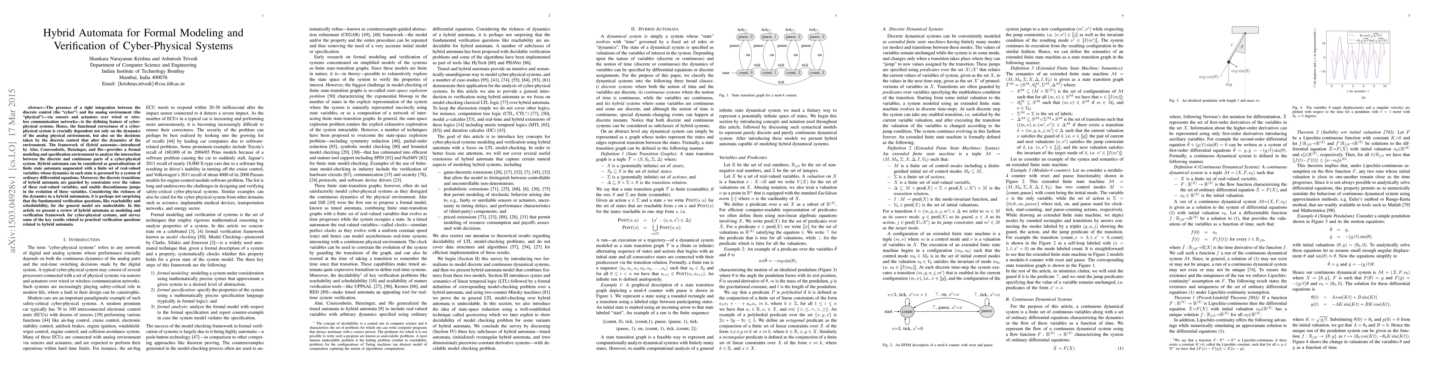 This paper reviews hybrid automata as a formal modeling and verification framework for cyber-physical systems, highlighting their ability to capture interactions between discrete control and continuous physical environments. It surveys key results on practical verification techniques despite the undecidability of fundamental questions.