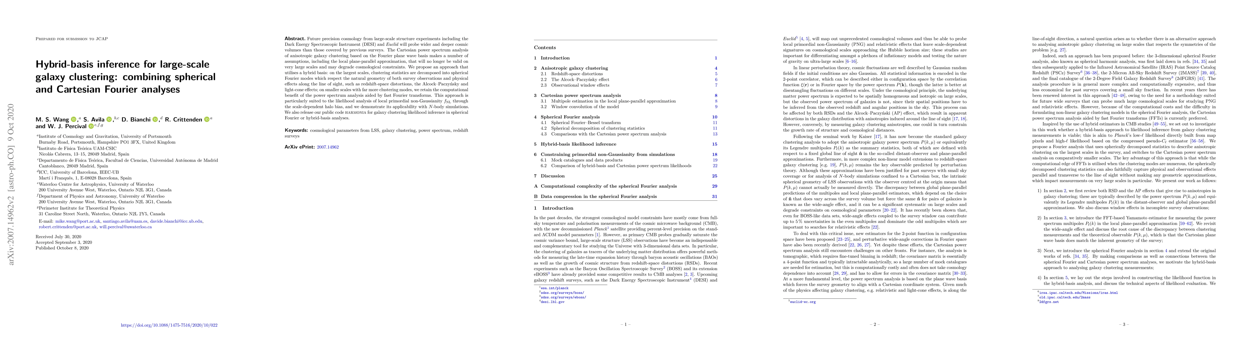 A hybrid basis approach combining spherical Fourier analysis for large scales and Cartesian Fourier analysis for small scales is proposed.
