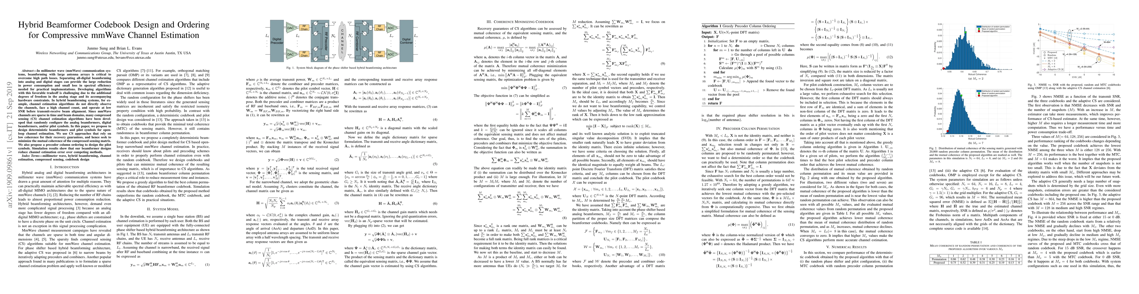 This paper proposes deterministic hybrid beamformer designs and pilot symbol ordering for compressive mmWave channel estimation, leveraging compressed sensing techniques to minimize mutual coherence and reduce channel estimation error compared to random configurations. Simulation results demonstrate improved performance over existing methods.