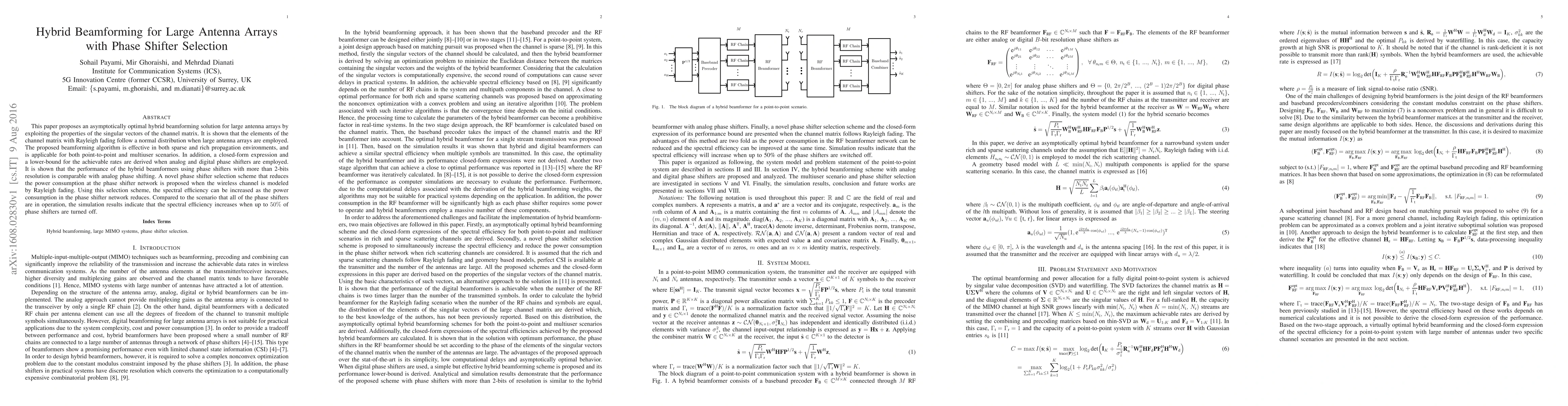 This paper presents an optimal hybrid beamforming method for large antenna arrays, leveraging the statistical properties of Rayleigh fading channels. It introduces a phase shifter selection scheme that enhances spectral efficiency by reducing power consumption, showing significant performance gains comparable to analog phase shifting.