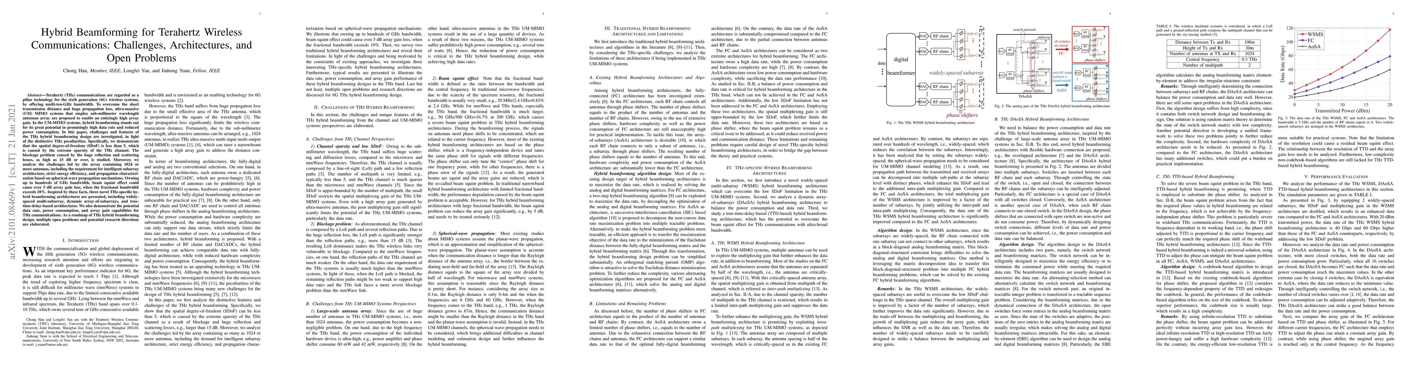 This paper investigates the challenges and architectures of hybrid beamforming for terahertz (THz) communications, highlighting the short transmission distance and high propagation loss in THz bands. It proposes three novel hybrid beamforming architectures to address these issues, while also discussing open problems and potential research directions.
