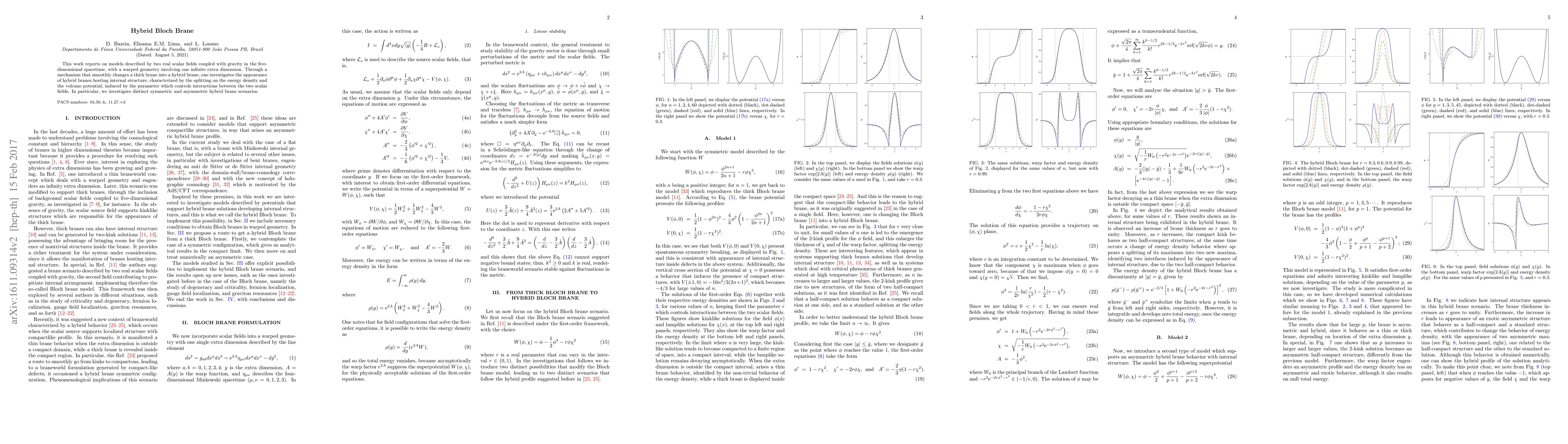 This work reports on models described by two real scalar fields coupled with gravity in the five-dimensional spacetime, with a warped geometry involving one infinite extra dimension. Through a mechanism that smoothly changes a thick brane into a hybrid brane, one investigates the appearance of hybrid branes hosting internal structure, characterized by the splitting on the energy density and the volcano potential, induced by the parameter which controls interactions between the two scalar fields. In particular, we investigate distinct symmetric and asymmetric hybrid brane scenarios.