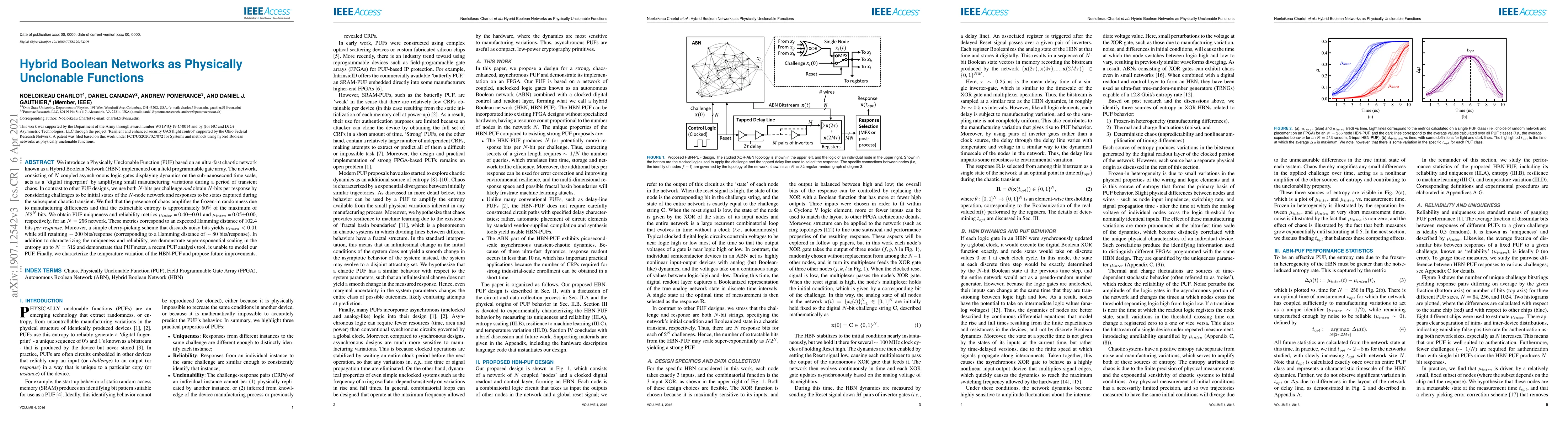 This paper introduces a Physically Unclonable Function (PUF) based on Hybrid Boolean Networks (HBN) that leverages chaotic dynamics to generate unique digital fingerprints. The HBN-PUF achieves high entropy extraction and demonstrates superior uniqueness and reliability metrics, scaling super-exponentially with network size.