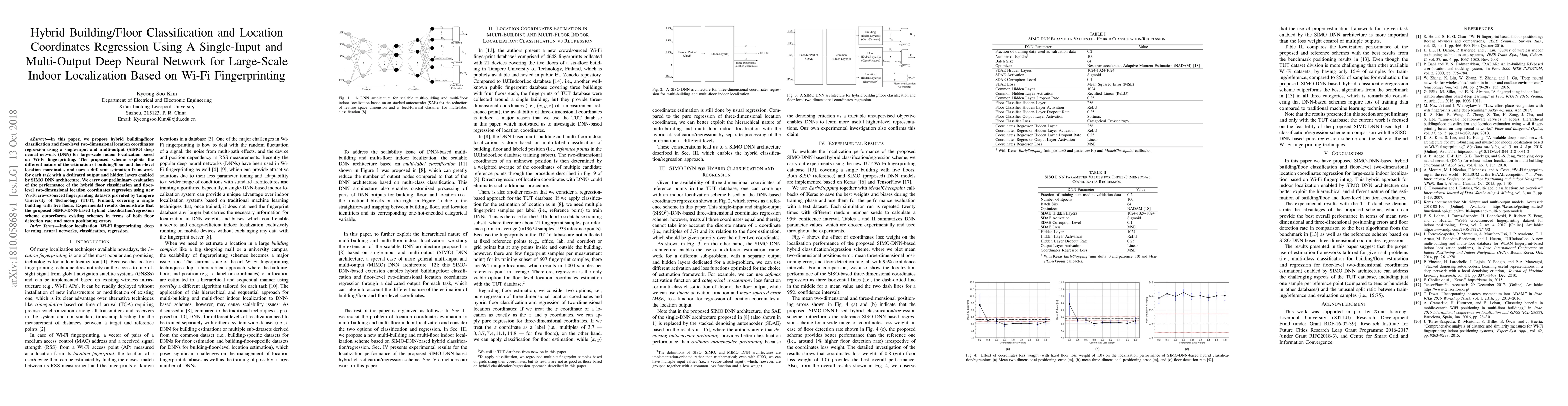 This paper proposes a hybrid deep neural network for indoor localization using Wi-Fi fingerprinting, which classifies buildings/floors and regresses floor-level coordinates in a single model. Experimental results show improved performance over existing methods using TUT crowdsourced datasets.