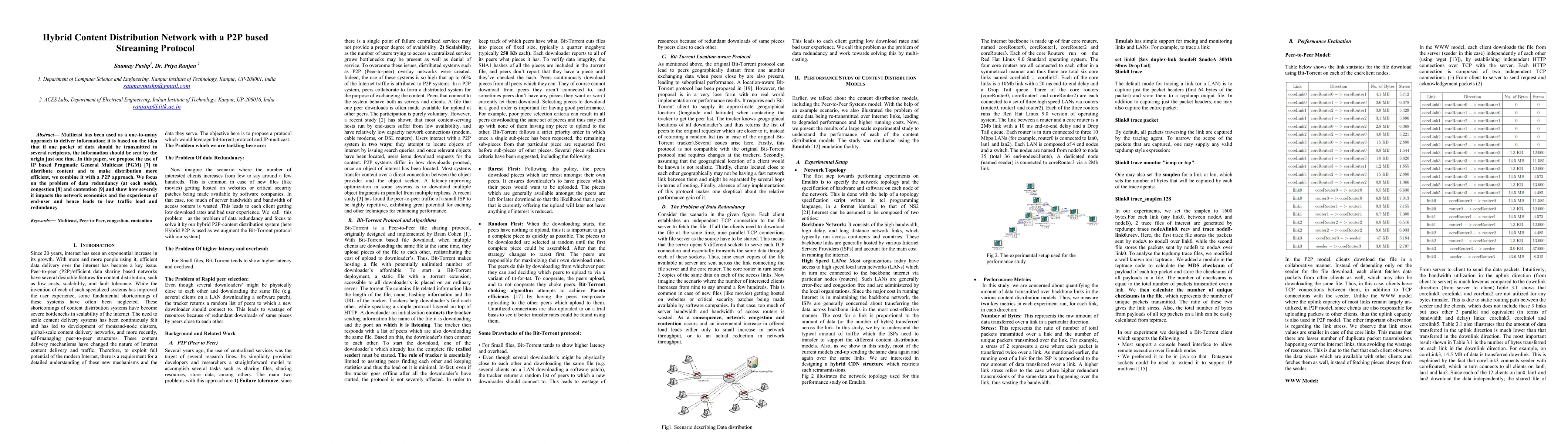 Over the last decade, internet has seen an exponential increase in its growth.With more and more people using it, efficient data delivery over the internet has become a key issue. Peer-to-peer (P2P)/seed sharing based networks have several desirable features for content distribution, such as low costs, scalability, and fault tolerance. While the invention of each of such specialized systems has improved the user experience, some fundamental shortcomings of these systems have often been neglected. These shortcomings of content distribution systems have become severe bottlenecks in scalability of the internet.In order to combine the desired features of classical Content Distribution Networks (CDNs) and P2P/seed sharing based networks, we propose a hybrid CDN structure with a P2P/seed sharing based streaming protocol in the access network . In this work, we focus on the problem of data redundancy (at each node) and show how severely it impacts the network economics and the experience of end-user and hence leads to low traffic load and redundancy