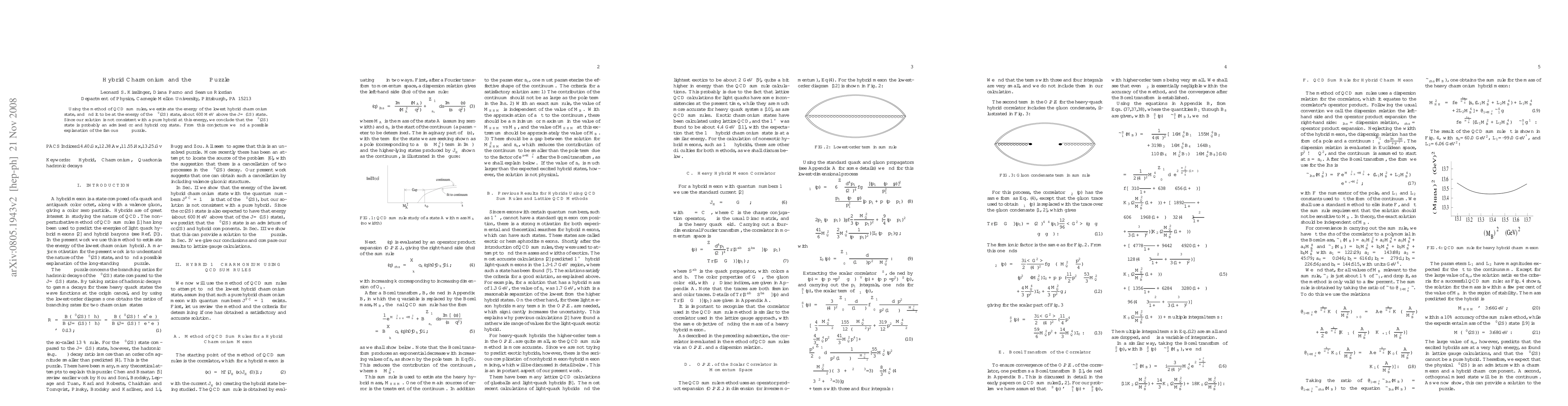 Using the method of QCD Sum Rules, we estimate the energy of the lowest hybrid Charmonium state, and find it to be at the energy of the $\Psi'(2S)$ state, about 600 Mev above the $J/\Psi(1S)$ state. Since our solution is not consistent with a pure hybrid at this energy, we conclude that the $\Psi'(2S)$ state is probably an admixed $c \bar{c}$ and hybrid $c \bar{c}g$ state. From this conjecture we find a possible explanation of the famous $\rho-\pi$ puzzle.