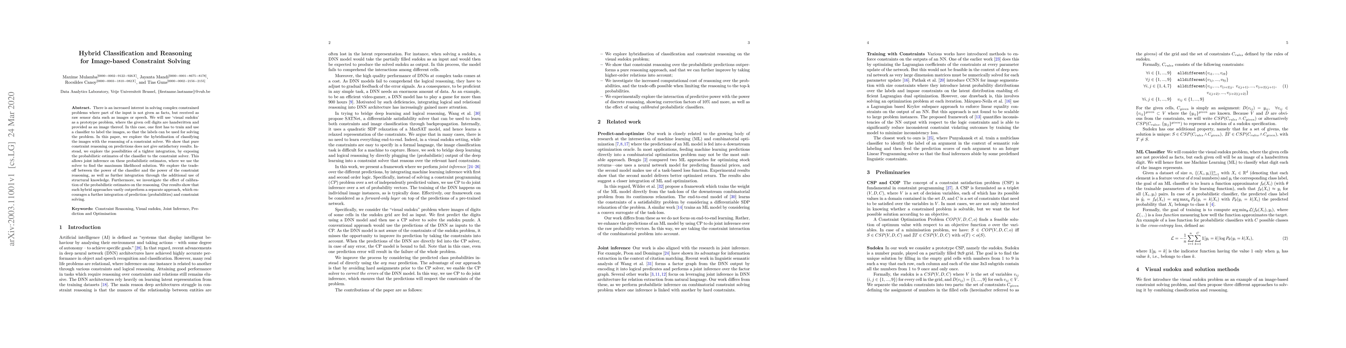 This research paper explores a hybrid approach to solving complex constrained problems using image-based input, showing that integrating classification with constraint reasoning outperforms separate approaches.