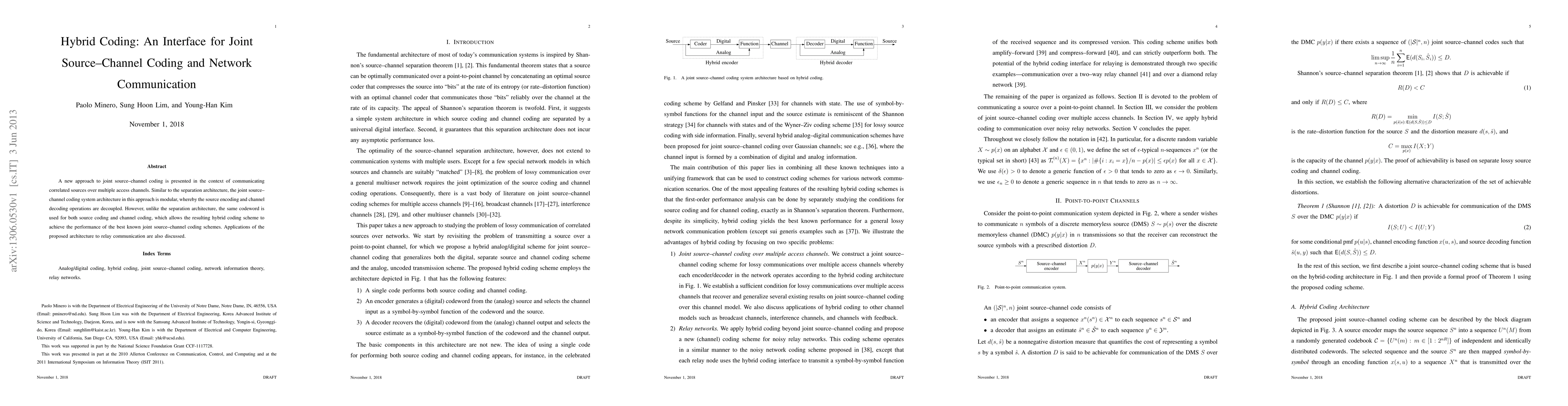 This paper introduces a hybrid coding scheme for joint source-channel coding that uses the same codeword for both source and channel coding, decoupling source encoding and channel decoding. This approach achieves performance comparable to the best known joint schemes and is applicable to relay communication.
