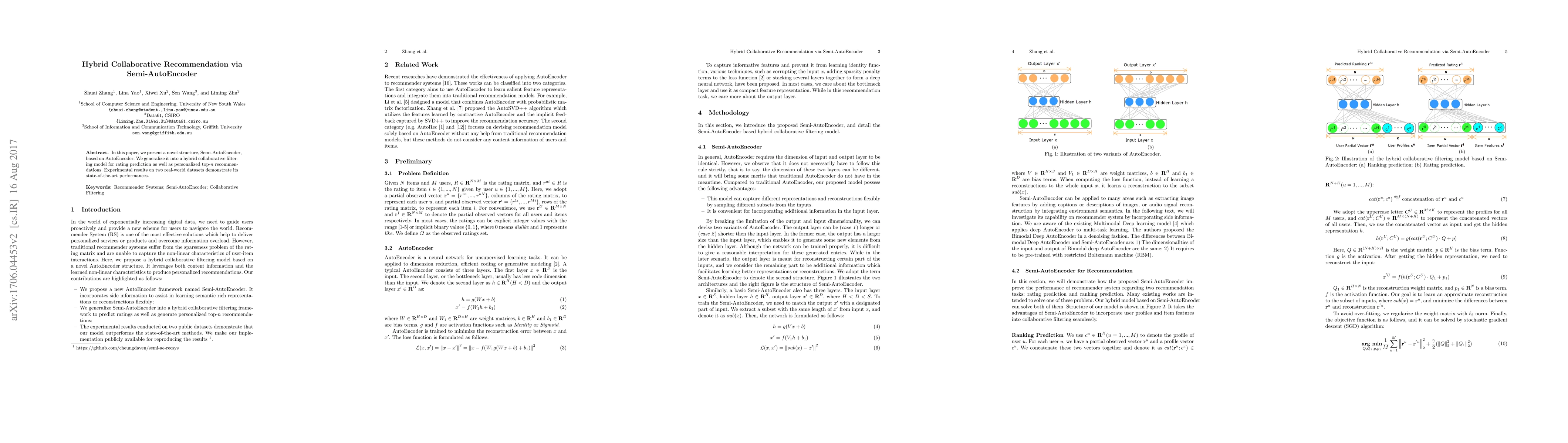 In this paper, we present a novel structure, Semi-AutoEncoder, based on AutoEncoder. We generalize it into a hybrid collaborative filtering model for rating prediction as well as personalized top-n recommendations. Experimental results on two real-world datasets demonstrate its state-of-the-art performances.