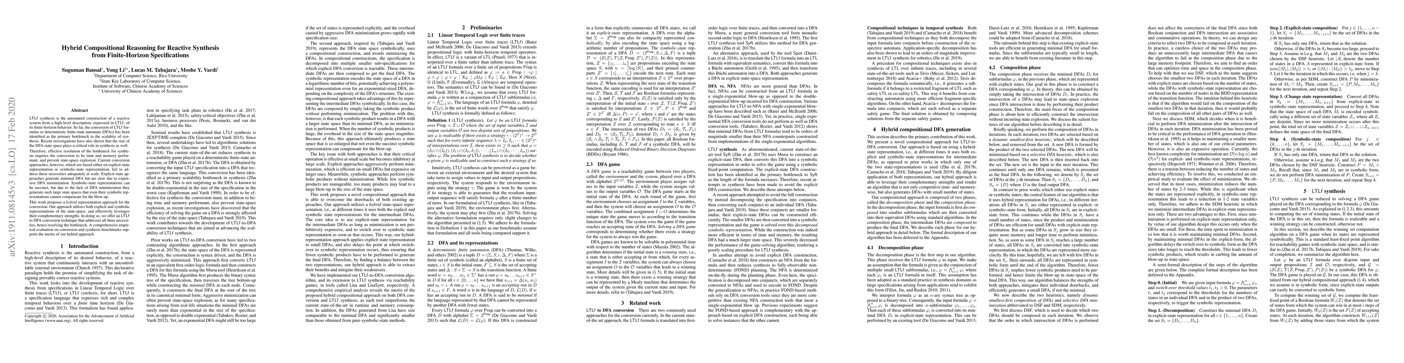 This paper proposes a hybrid compositional reasoning method for LTLf synthesis that combines explicit and symbolic state representations to efficiently convert LTLf specifications into DFAs, addressing scalability issues and state-space explosion. The hybrid approach effectively leverages the strengths of both representations to achieve time and memory efficiency.