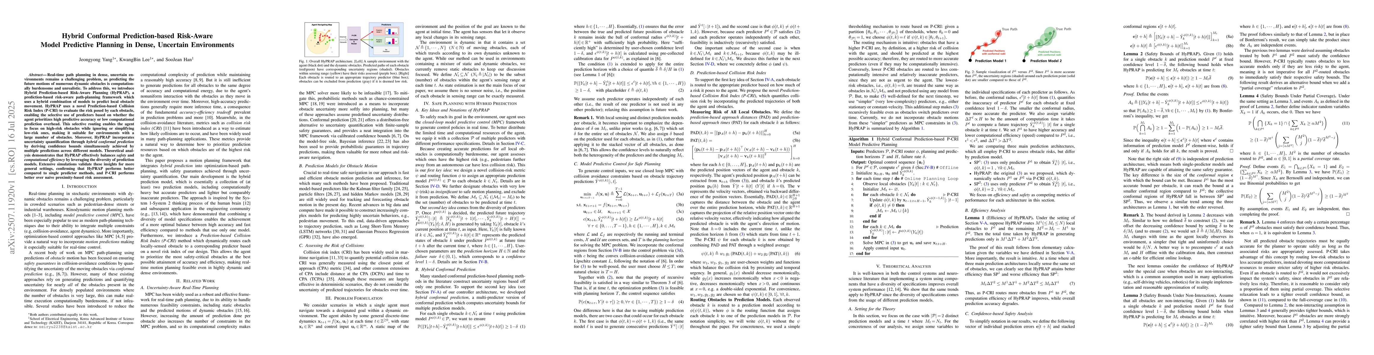 The research introduces HyPRAP, a hybrid conformal prediction-based risk-aware path planning framework for dense, uncertain environments. It uses a combination of predictive models to estimate obstacle movements, employing a novel Prediction-based Collision Risk Index (P-CRI) to prioritize high-risk obstacles while managing computational overhead.