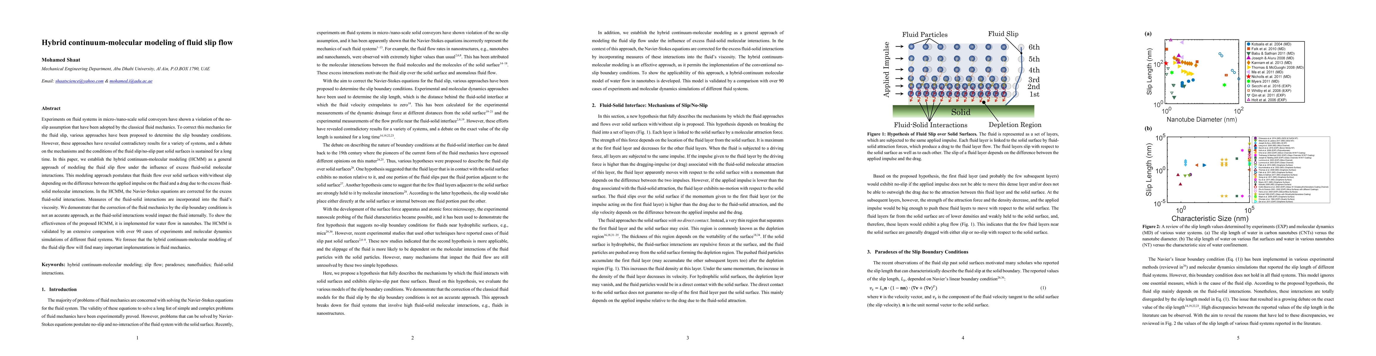 The research establishes the hybrid continuum-molecular modeling (HCMM) approach, which corrects classical fluid mechanics for fluid slip by considering excess fluid-solid molecular interactions that alter fluid viscosity.