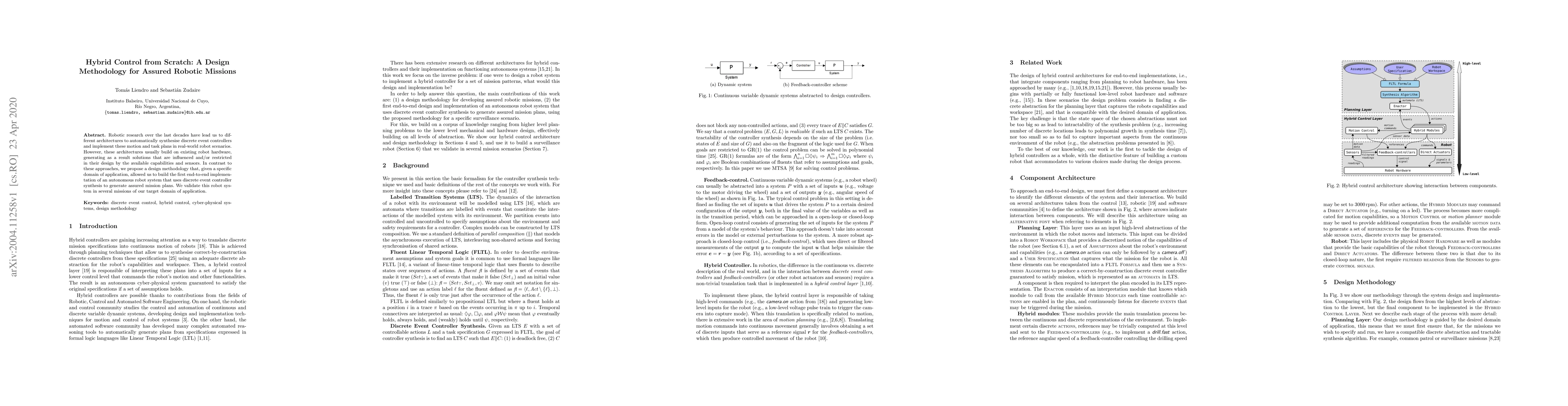 This paper proposes a novel design methodology for creating autonomous robotic systems from scratch, using discrete event controller synthesis to generate assured mission plans, independent of existing hardware limitations. The methodology is validated through successful implementation and testing in various robotic missions within the target domain.