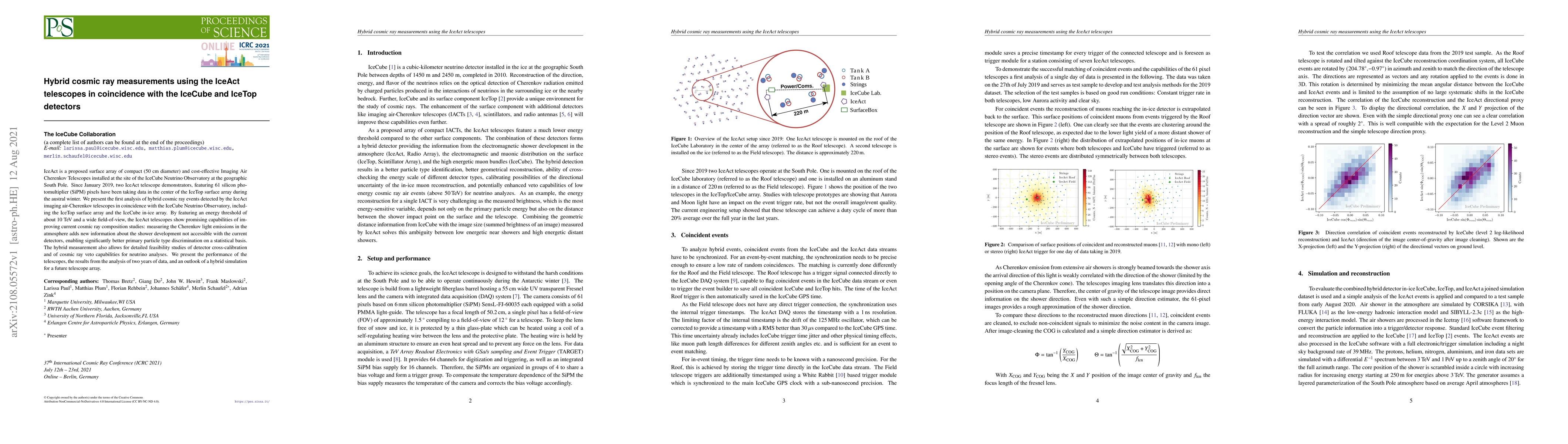 IceAct is a proposed surface array of compact (50 cm diameter) and cost-effective Imaging Air Cherenkov Telescopes installed at the site of the IceCube Neutrino Observatory at the geographic South Pole. Since January 2019, two IceAct telescope demonstrators, featuring 61 silicon pho- tomultiplier (SiPM) pixels have been taking data in the center of the IceTop surface array during the austral winter. We present the first analysis of hybrid cosmic ray events detected by the IceAct imaging air-Cherenkov telescopes in coincidence with the IceCube Neutrino Observatory, includ- ing the IceTop surface array and the IceCube in-ice array. By featuring an energy threshold of about 10 TeV and a wide field-of-view, the IceAct telescopes show promising capabilities of im- proving current cosmic ray composition studies: measuring the Cherenkov light emissions in the atmosphere adds new information about the shower development not accessible with the current detectors, enabling significantly better primary particle type discrimination on a statistical basis. The hybrid measurement also allows for detailed feasibility studies of detector cross-calibration and of cosmic ray veto capabilities for neutrino analyses. We present the performance of the telescopes, the results from the analysis of two years of data, and an outlook of a hybrid simulation for a future telescope array.