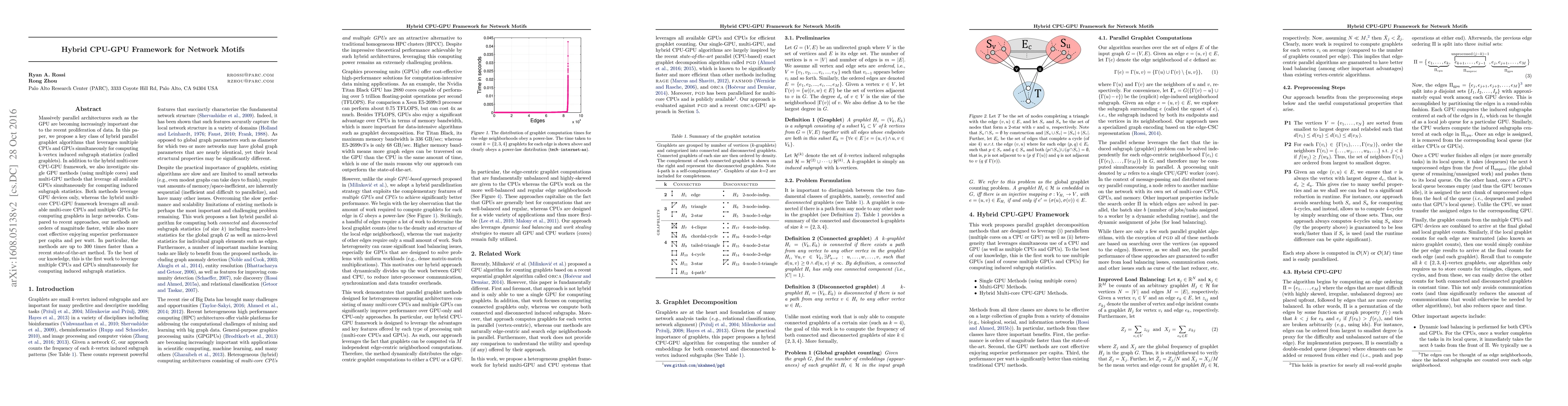 Massively parallel architectures such as the GPU are becoming increasingly important due to the recent proliferation of data. In this paper, we propose a key class of hybrid parallel graphlet algorithms that leverages multiple CPUs and GPUs simultaneously for computing k-vertex induced subgraph statistics (called graphlets). In addition to the hybrid multi-core CPU-GPU framework, we also investigate single GPU methods (using multiple cores) and multi-GPU methods that leverage all available GPUs simultaneously for computing induced subgraph statistics. Both methods leverage GPU devices only, whereas the hybrid multi-core CPU-GPU framework leverages all available multi-core CPUs and multiple GPUs for computing graphlets in large networks. Compared to recent approaches, our methods are orders of magnitude faster, while also more cost effective enjoying superior performance per capita and per watt. In particular, the methods are up to 300 times faster than the recent state-of-the-art method. To the best of our knowledge, this is the first work to leverage multiple CPUs and GPUs simultaneously for computing induced subgraph statistics.