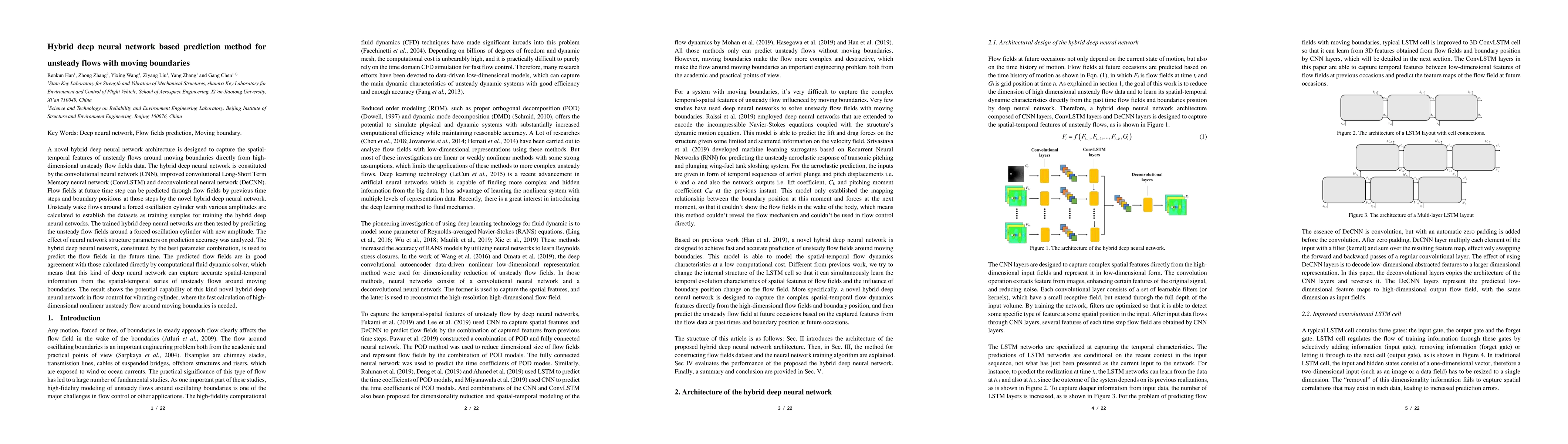 This paper proposes a hybrid deep neural network combining CNN, ConvLSTM, and DeCNN to predict unsteady flow fields around moving boundaries. The network accurately captures spatial-temporal features from high-dimensional data, demonstrating potential for flow control in vibrating cylinders.