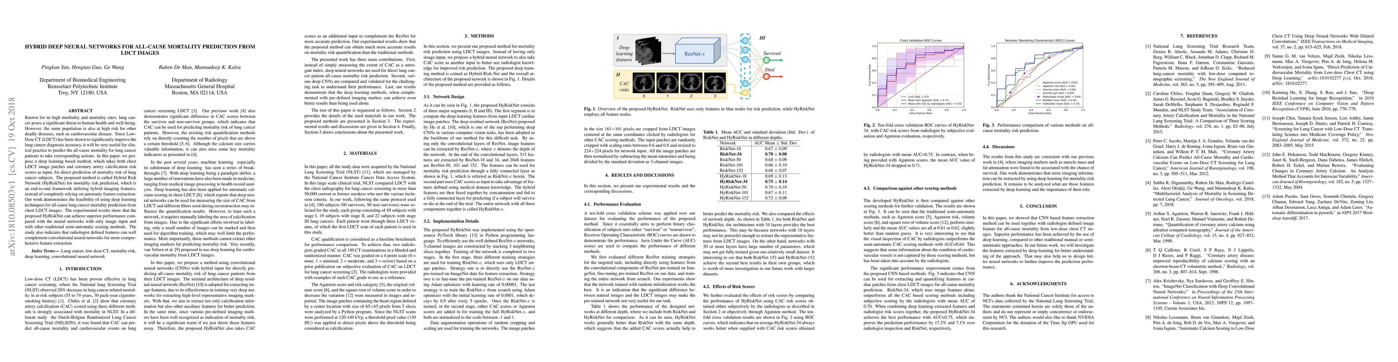 A new deep learning model called Hybrid Risk Network (HyRiskNet) predicts all-cause mortality for lung cancer patients from low-dose CT images, achieving superior performance compared to other methods.