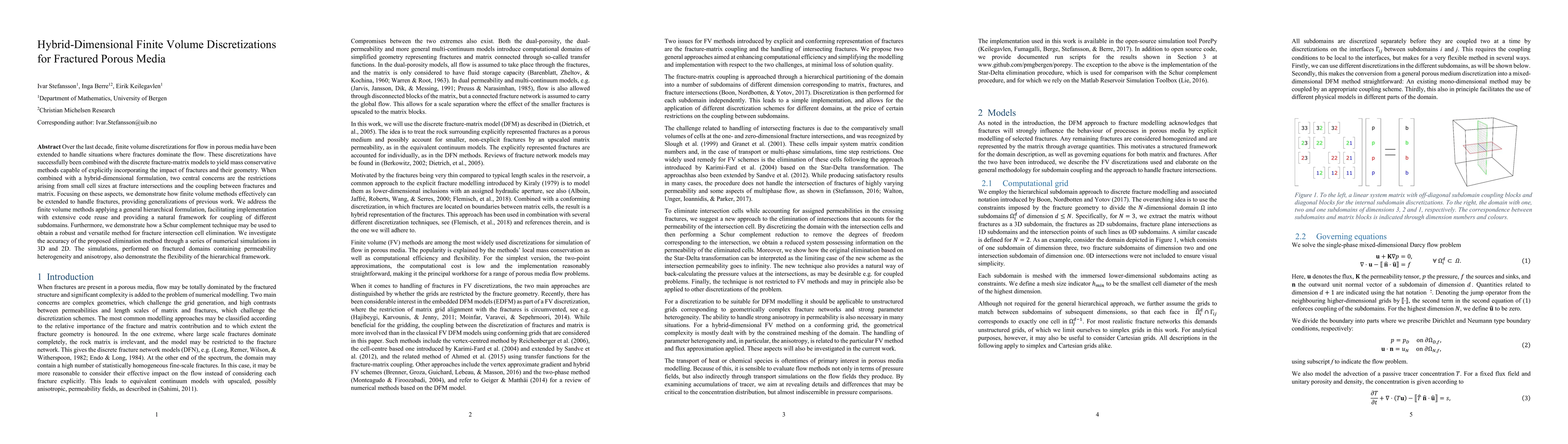 Researchers developed a method to simulate fluid flow in porous media with fractures using finite volume discretizations, addressing issues with small cell sizes and fracture intersection couplings.