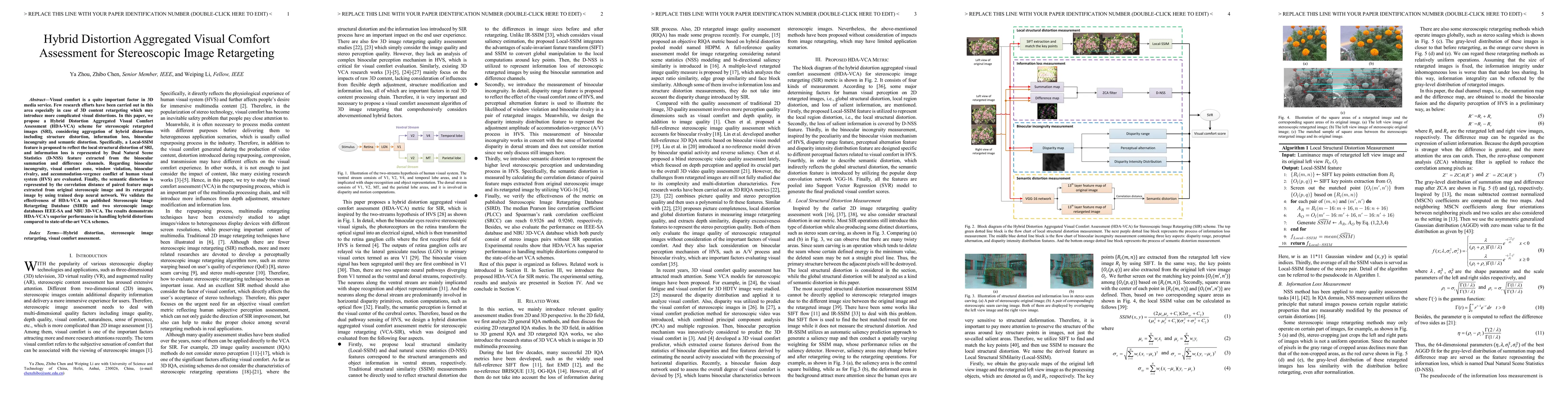 This paper proposes a Hybrid Distortion Aggregated Visual Comfort Assessment (HDA-VCA) scheme for stereoscopic retargeted images, evaluating structure distortion, information loss, binocular incongruity, and semantic distortion to enhance visual comfort in 3D media services. The method is validated on multiple databases, showing superior performance over existing schemes.