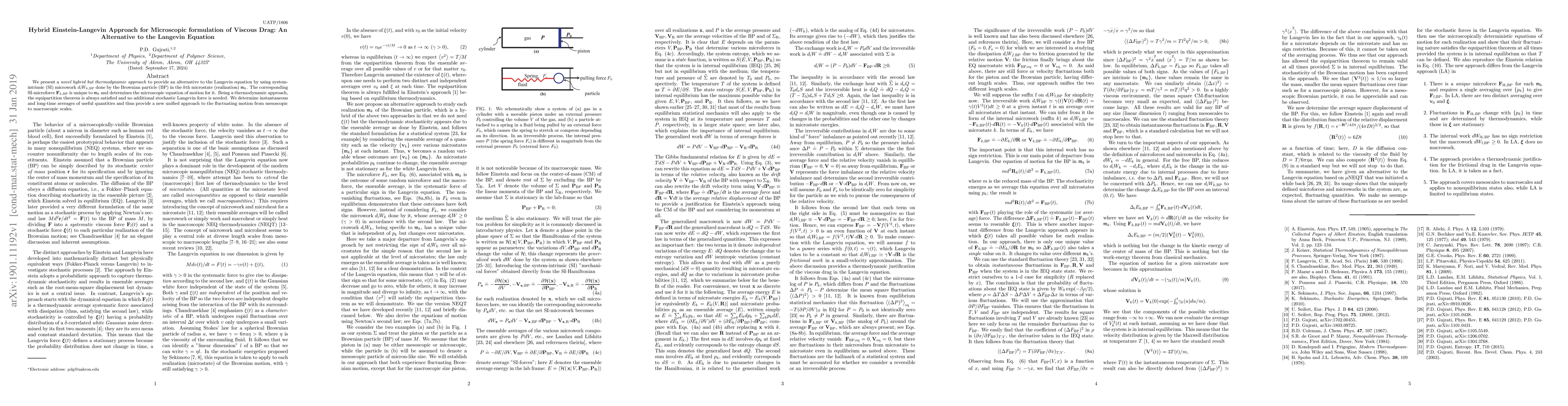 This paper introduces a hybrid Einstein-Langevin approach that offers an alternative to the traditional Langevin equation by utilizing system-intrinsic microwork and microforces. This thermodynamic method satisfies the equipartition theorem without requiring additional stochastic forces, providing a new unified framework for understanding fluctuating motion from mesoscopic to macroscopic scales.