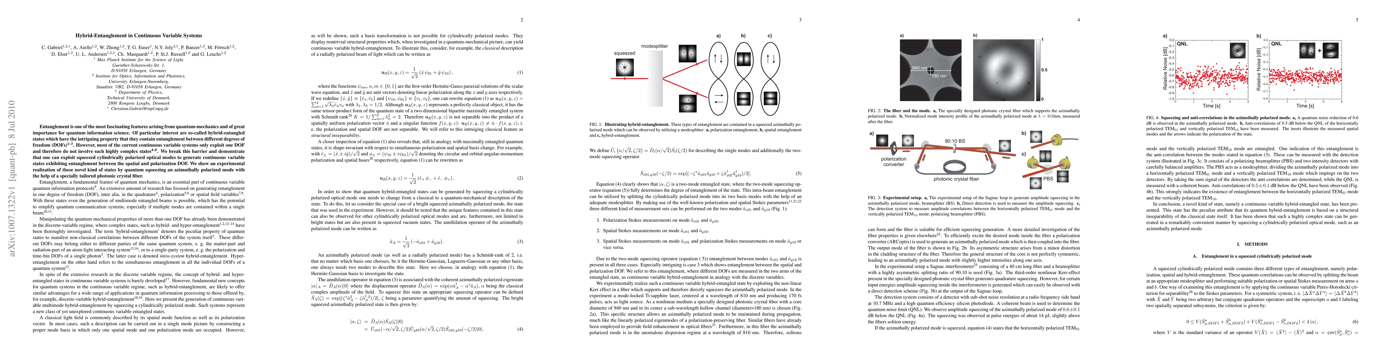 This paper explores the generation of hybrid-entangled states in continuous variable systems, demonstrating entanglement between spatial and polarization degrees of freedom using squeezed cylindrically polarized optical modes. An experimental setup utilizing a photonic crystal fiber achieves this novel entanglement.