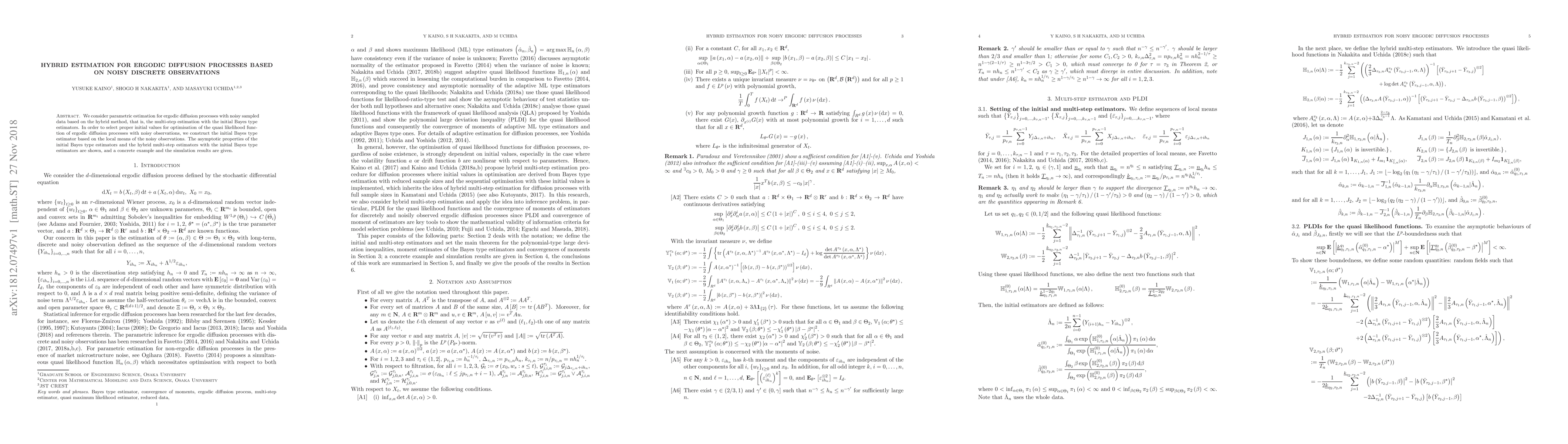 This paper proposes a hybrid estimation method for ergodic diffusion processes based on noisy discrete observations. It constructs initial Bayes type estimators using local means of observations and optimizes the quasi likelihood function, demonstrating their asymptotic properties and providing simulation results.