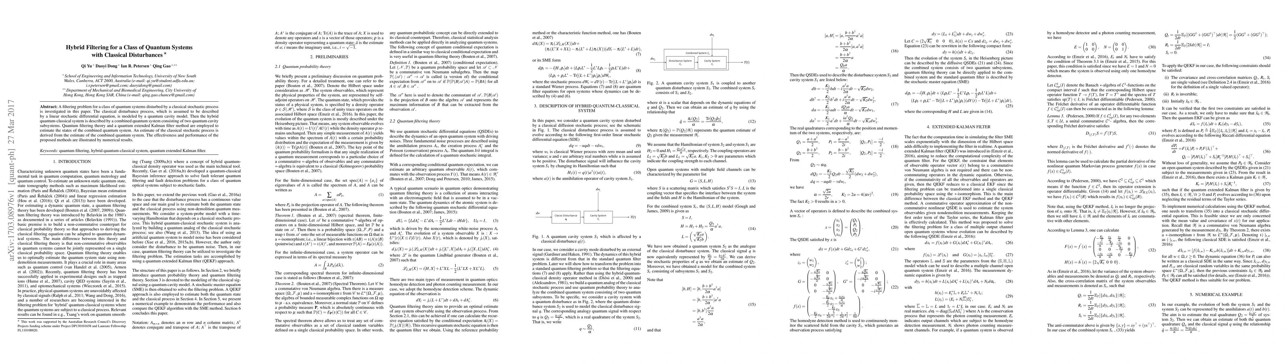 Researchers develop a hybrid filtering method for quantum systems affected by classical noise, using a combination of quantum filtering theory and the extended Kalman filter, to estimate system states and derive classical disturbance processes.