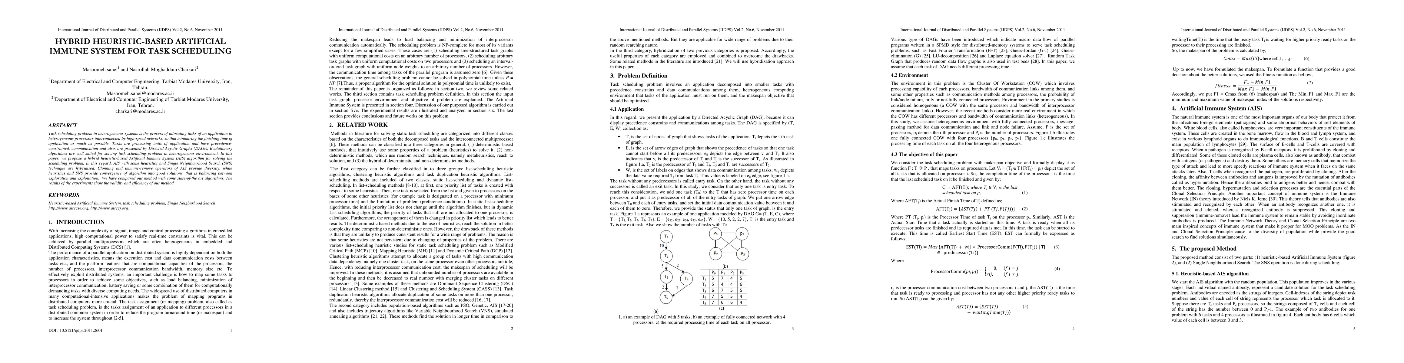 Task scheduling problem in heterogeneous systems is the process of allocating tasks of an application to heterogeneous processors interconnected by high-speed networks, so that minimizing the finishing time of application as much as possible. Tasks are processing units of application and have precedenceconstrained, communication and also, are presented by Directed Acyclic Graphs (DAGs). Evolutionary algorithms are well suited for solving task scheduling problem in heterogeneous environment. In this paper, we propose a hybrid heuristic-based Artificial Immune System (AIS) algorithm for solving the scheduling problem. In this regard, AIS with some heuristics and Single Neighbourhood Search (SNS) technique are hybridized. Clonning and immune-remove operators of AIS provide diversity, while heuristics and SNS provide convergence of algorithm into good solutions, that is balancing between exploration and exploitation. We have compared our method with some state-of-the art algorithms. The results of the experiments show the validity and efficiency of our method.