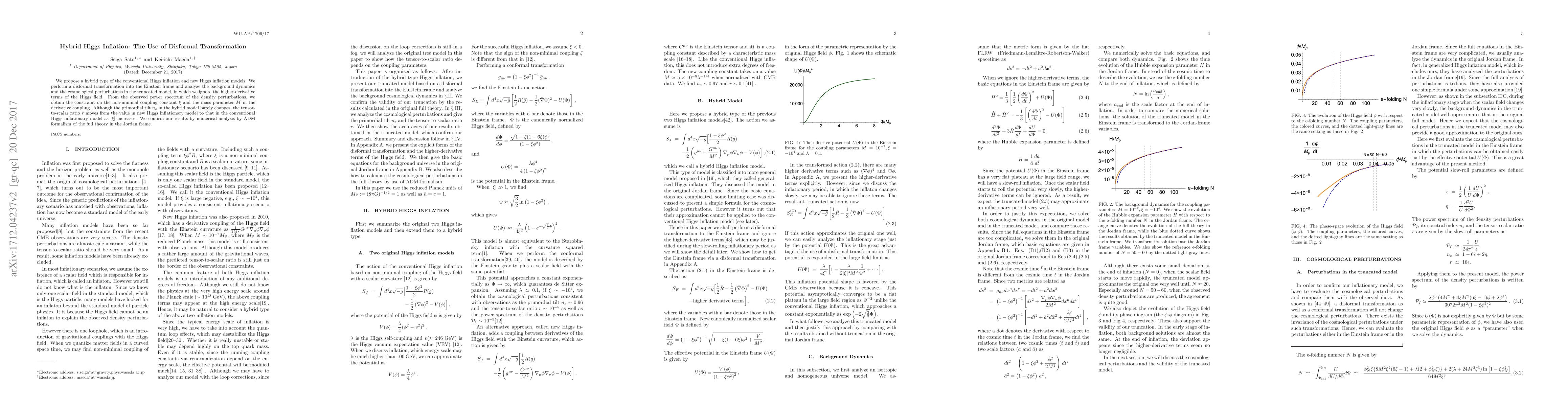We propose a hybrid type of the conventional Higgs inflation and new Higgs inflation models. We perform a disformal transformation into the Einstein frame and analyze the background dynamics and the cosmological perturbations in the truncated model, in which we ignore the higher-derivative terms of the Higgs field. From the observed power spectrum of the density perturbations, we obtain the constraint on the non-minimal coupling constant $\xi$ and the mass parameter $M$ in the derivative coupling. Although the primordial tilt $n_s$ in the hybrid model barely changes, the tensor-to-scalar ratio $r$ moves from the value in new Higgs inflationary model to that in the conventional Higgs inflationary model as $|\xi|$ increases. We confirm our results by numerical analysis by ADM formalism of the full theory in the Jordan frame.