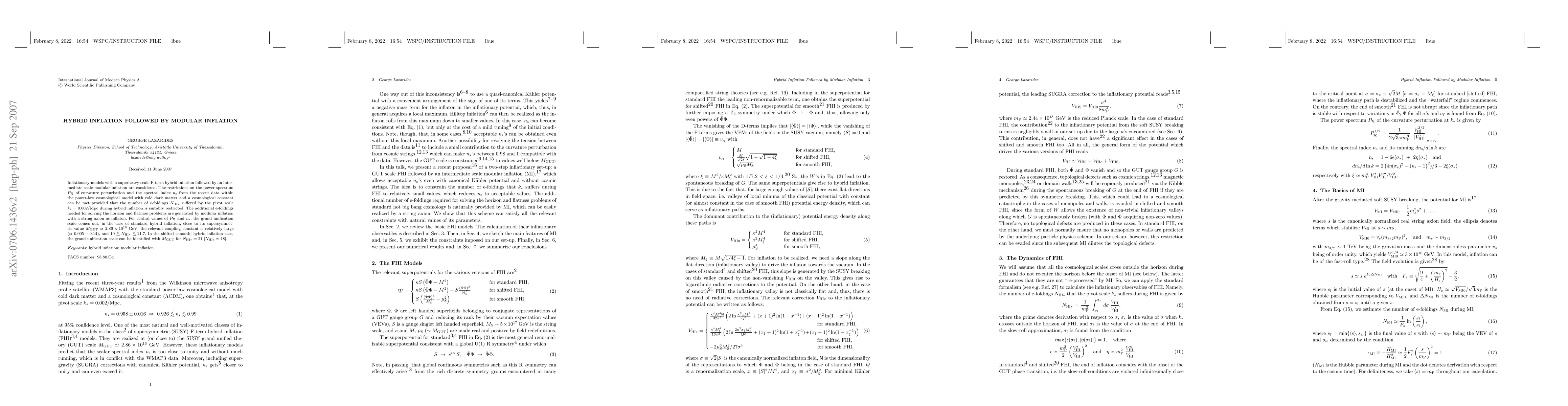 Inflationary models with a superheavy scale F-term hybrid inflation followed by an intermediate scale modular inflation are considered. The restrictions on the power spectrum P_R of curvature perturbation and the spectral index n_s from the recent data within the power-law cosmological model with cold dark matter and a cosmological constant can be met provided that the number of e-foldings N_HI* suffered by the pivot scale k_*=0.002/Mpc during hybrid inflation is suitably restricted. The additional e-foldings needed for solving the horizon and flatness problems are generated by modular inflation with a string axion as inflaton. For central values of P_R and n_s, the grand unification scale comes out, in the case of standard hybrid inflation, close to its supersymmetric value M_GUT=2.86 x 10^16 GeV, the relevant coupling constant is relatively large (0.005-0.14), and N_HI* is between 10 and 21.7. In the shifted [smooth] hybrid inflation case, the grand unification scale can be identified with M_GUT for N_HI*=21 [N_HI*=18].