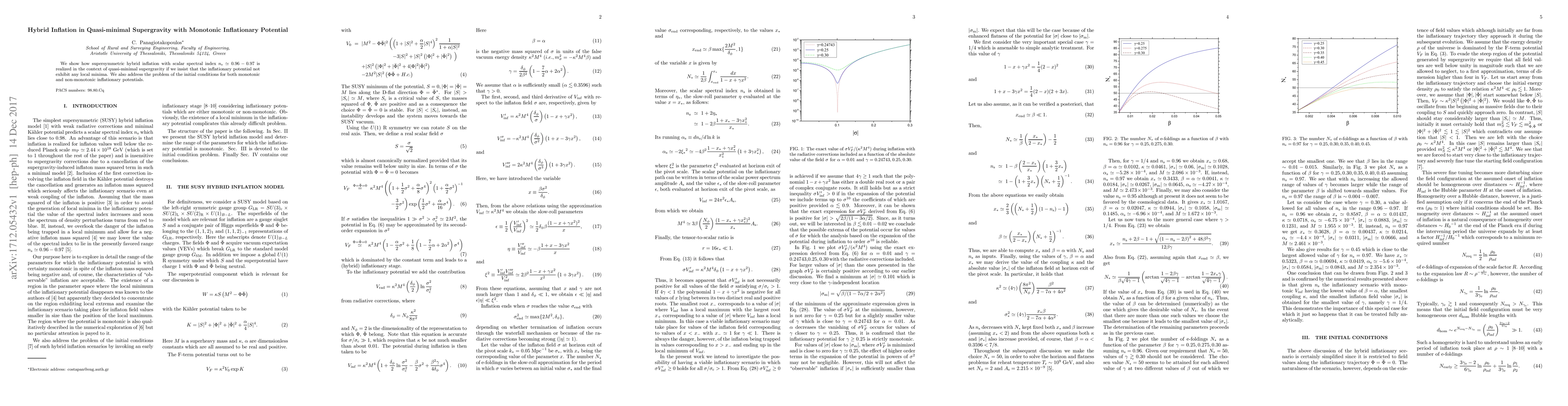 This research paper shows how supersymmetric hybrid inflation can occur in quasi-minimal supergravity without local minima, addressing initial conditions for both monotonic and non-monotonic inflationary potentials.