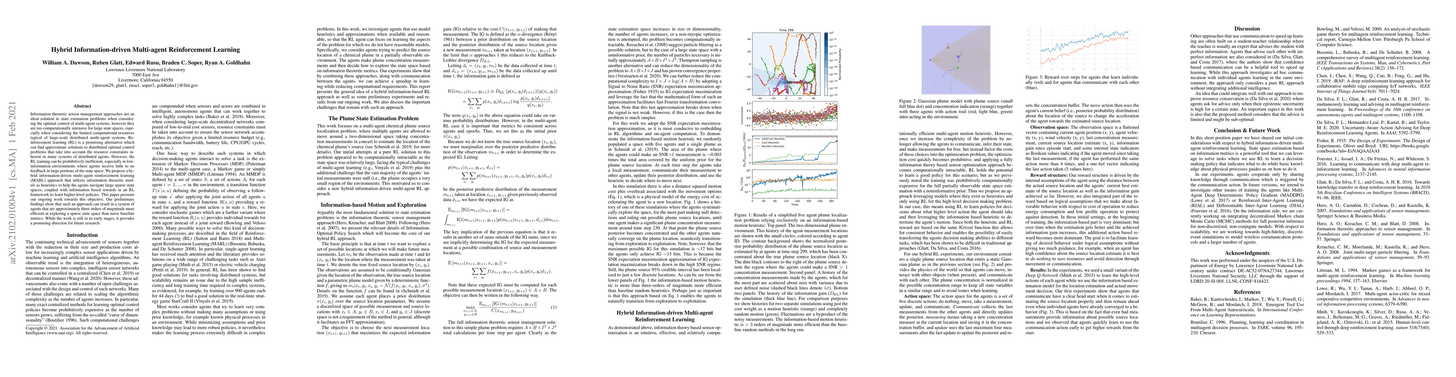 This paper proposes a hybrid information-driven multi-agent reinforcement learning approach that combines information theoretic models with RL to efficiently navigate large, sparse state spaces. Preliminary findings indicate the method is significantly more efficient than baselines, suggesting a promising direction for future research.
