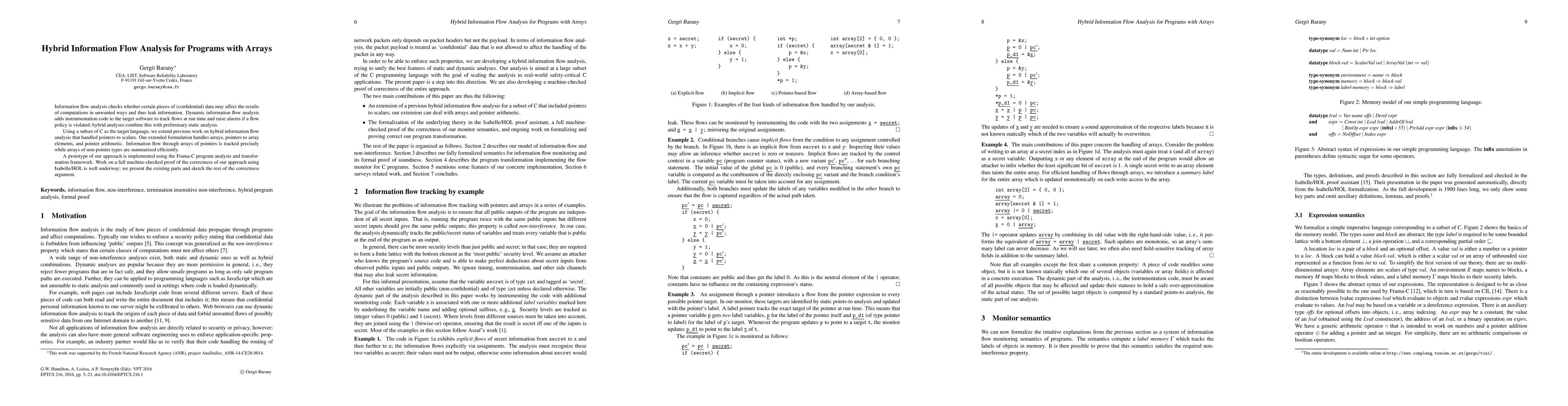 The paper presents an extended hybrid information flow analysis for programs with arrays and provides a detailed formal semantics and correctness proof.