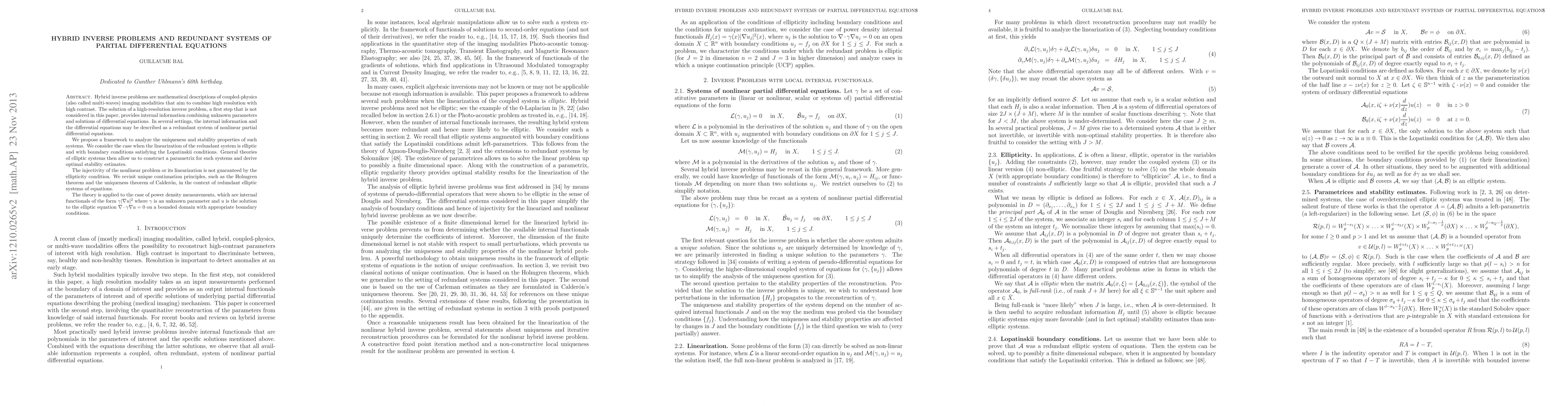 This paper proposes a framework for analyzing the uniqueness and stability of redundant systems of nonlinear partial differential equations arising in hybrid inverse problems. It leverages ellipticity and boundary conditions to derive optimal stability estimates and applies the theory to power density measurements.