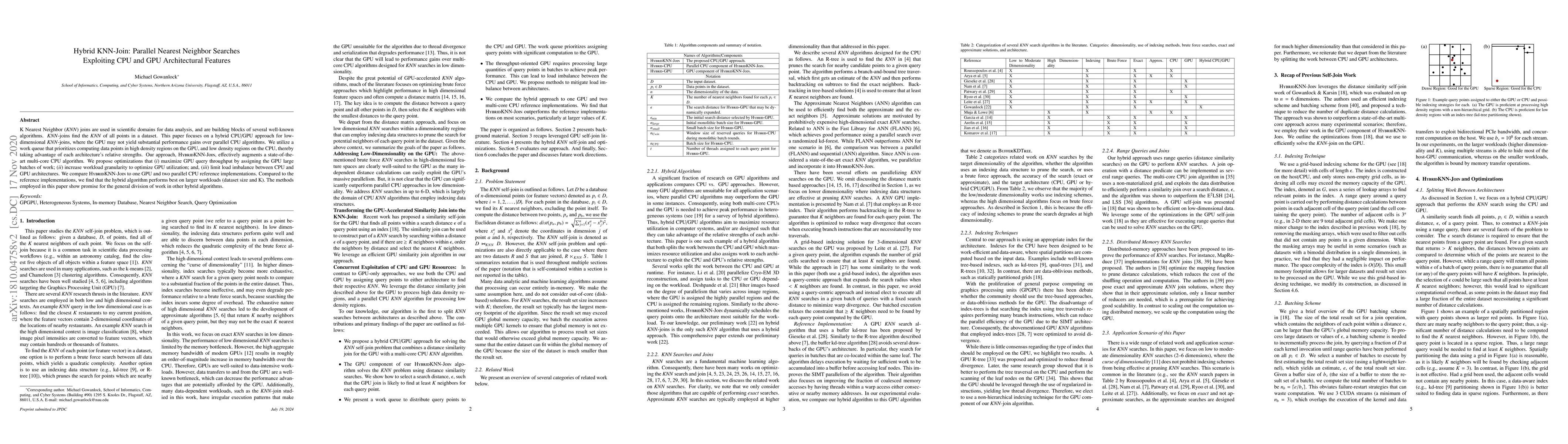 This paper proposes HybridKNN-Join, a hybrid CPU/GPU approach for efficient low-dimensional KNN-joins, optimizing workload distribution between high-density GPU and low-density CPU regions. The hybrid method outperforms parallel CPU and GPU-only implementations on larger datasets.