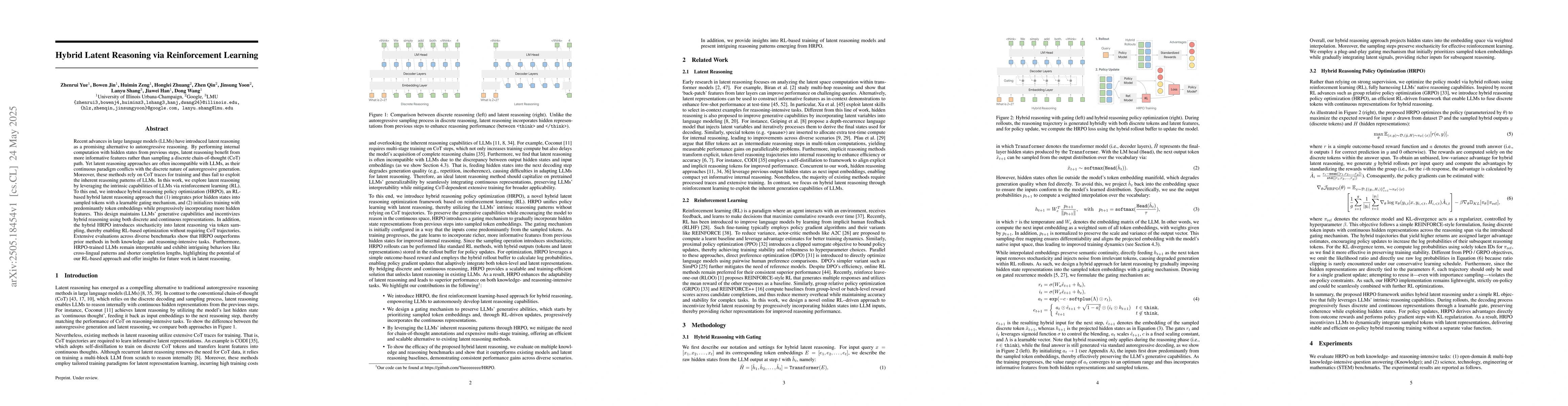 Researchers introduced Hybrid Reasoning Policy Optimization (HRPO), a reinforcement learning-based approach that combines discrete and continuous representations to improve latent reasoning in large language models, outperforming prior methods on diverse benchmarks.