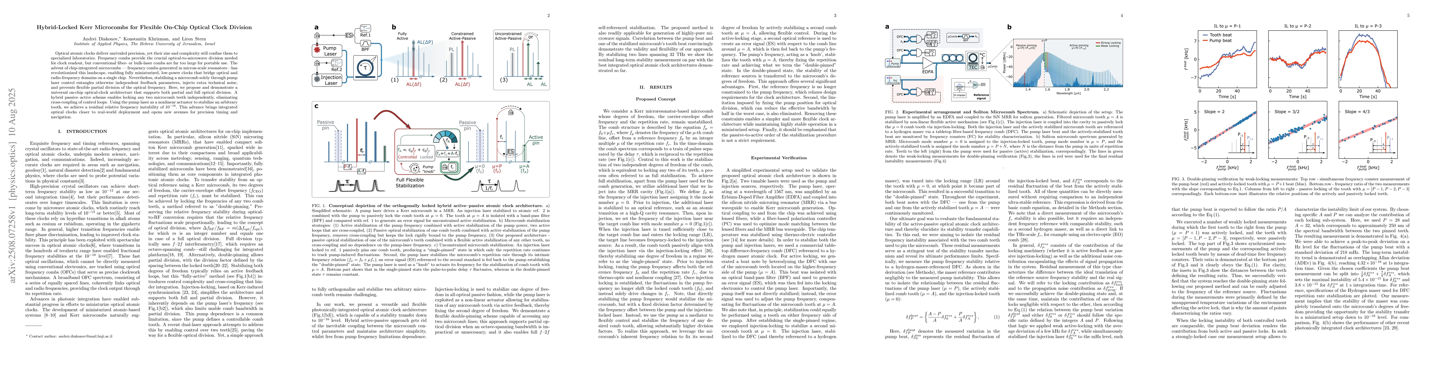 Optical atomic clocks deliver unrivaled precision, yet their size and complexity still confine them to specialized laboratories. Frequency combs provide the crucial optical-to-microwave division needed for clock readout, but conventional fiber- or bulk-laser combs are far too large for portable use. The advent of chip-integrated microcombs, frequency combs generated in micron-scale resonators, has revolutionized this landscape, enabling fully miniaturized, low-power clocks that bridge optical and radio-frequency domains on a single chip. Nevertheless, stabilizing a microcomb solely through pump laser control entangles otherwise independent feedback parameters, injects extra technical noise, and prevents flexible partial division of the optical frequency. Here, we propose and demonstrate a universal on-chip optical-clock architecture that supports both partial and full optical division. A hybrid passive-active scheme enables locking any two microcomb teeth independently, eliminating cross-coupling of control loops. Using the pump laser as a nonlinear actuator to stabilize an arbitrary tooth, we achieve a residual relative frequency instability of 1e-16. This advance brings integrated optical clocks closer to real-world deployment and opens new avenues for precision timing and navigation.