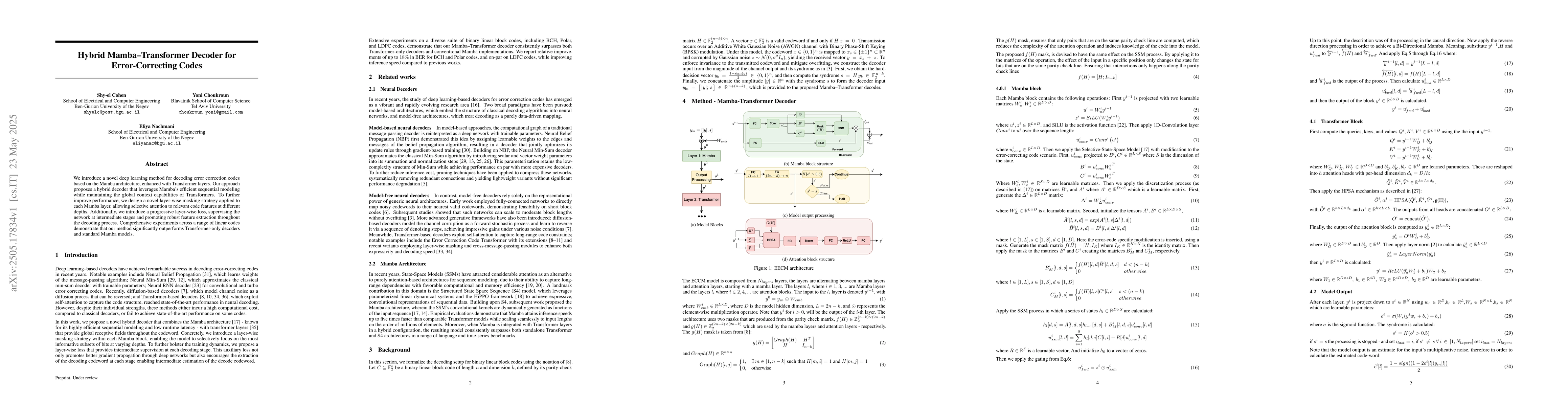 A new hybrid decoder combines Mamba architecture with Transformer layers to improve error correction code decoding performance, outperforming traditional decoders.