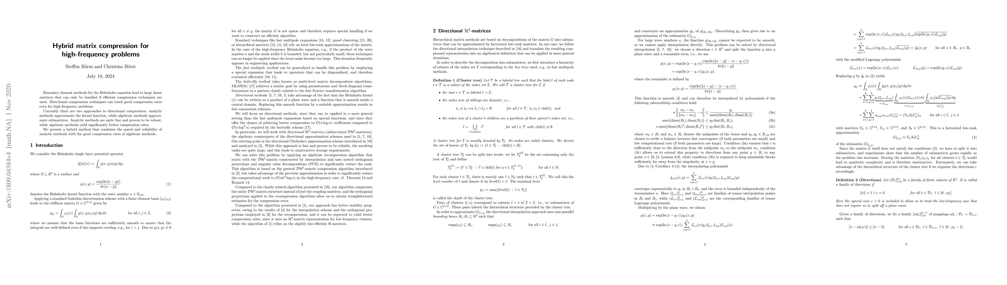 A new hybrid approach combines the speed of analytic directional compression with the high compression rates of algebraic methods for efficient matrix handling in high-frequency problems.