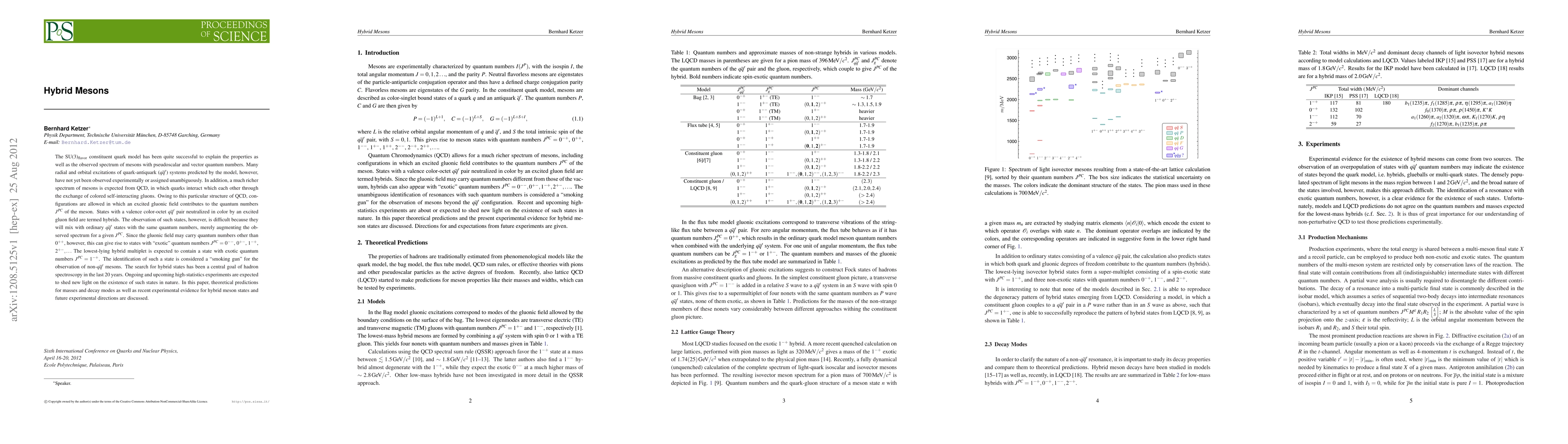 The SU(3)_flavor constituent quark model has been quite successful to explain the properties as well as the observed spectrum of mesons with pseudoscalar and vector quantum numbers. Many radial and orbital excitations of quark-antiquark systems predicted by the model, however, have not yet been observed experimentally or assigned unambiguously. In addition, a much richer spectrum of mesons is expected from QCD, in which quarks interact which each other through the exchange of colored self-interacting gluons. Owing to this particular structure of QCD, configurations are allowed in which an excited gluonic field contributes to the quantum numbers J^{PC} of the meson. States with a valence color-octet qqbar' pair neutralized in color by an excited gluon field are termed hybrids. The observation of such states, however, is difficult because they will mix with ordinary qqbar' states with the same quantum numbers, merely augmenting the observed spectrum for a given J^{PC}. Since the gluonic field may carry quantum numbers other than 0^{++}, however, this can give rise to states with "exotic" quantum numbers J^{PC}=0^{--}, 0^{+-}, 1^{-+}, 2^{+-},... The lowest-lying hybrid multiplet is expected to contain a state with exotic quantum numbers J^{PC}=1^{-+}. The identification of such a state is considered a "smoking gun" for the observation of non-qqbar mesons. The search for hybrid states has been a central goal of hadron spectroscopy in the last 20 years. Ongoing and upcoming high-statistics experiments are expected to shed new light on the existence of such states in nature. In this paper, theoretical predictions for masses and decay modes as well as recent experimental evidence for hybrid meson states and future experimental directions are discussed.